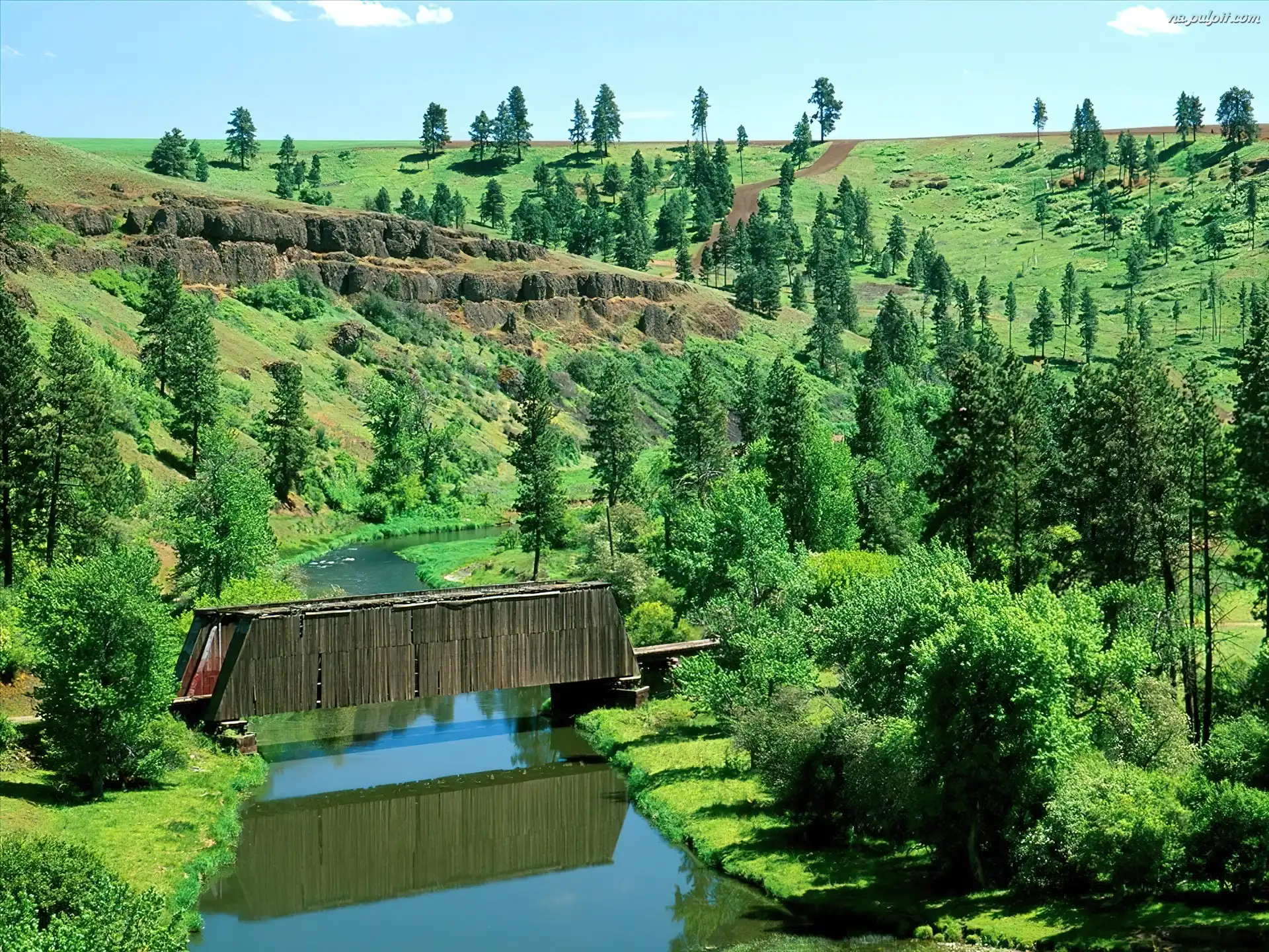 Drzewa, Covered Bridge, Most, Washington Na Pulpit