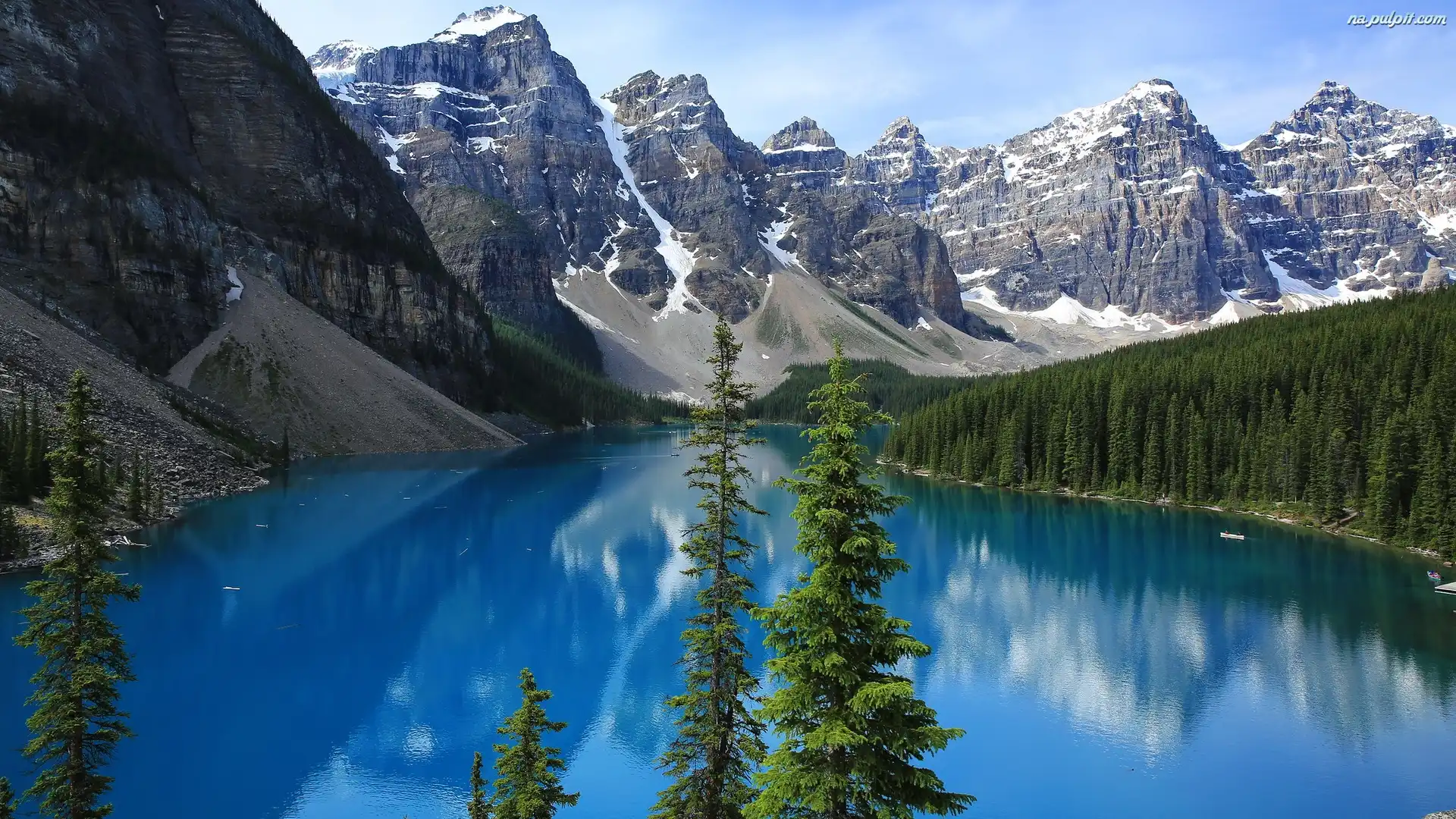Jezioro, Park Narodowy Banff, Kanada, Moraine Lake, Góry, Drzewa Na Pulpit
