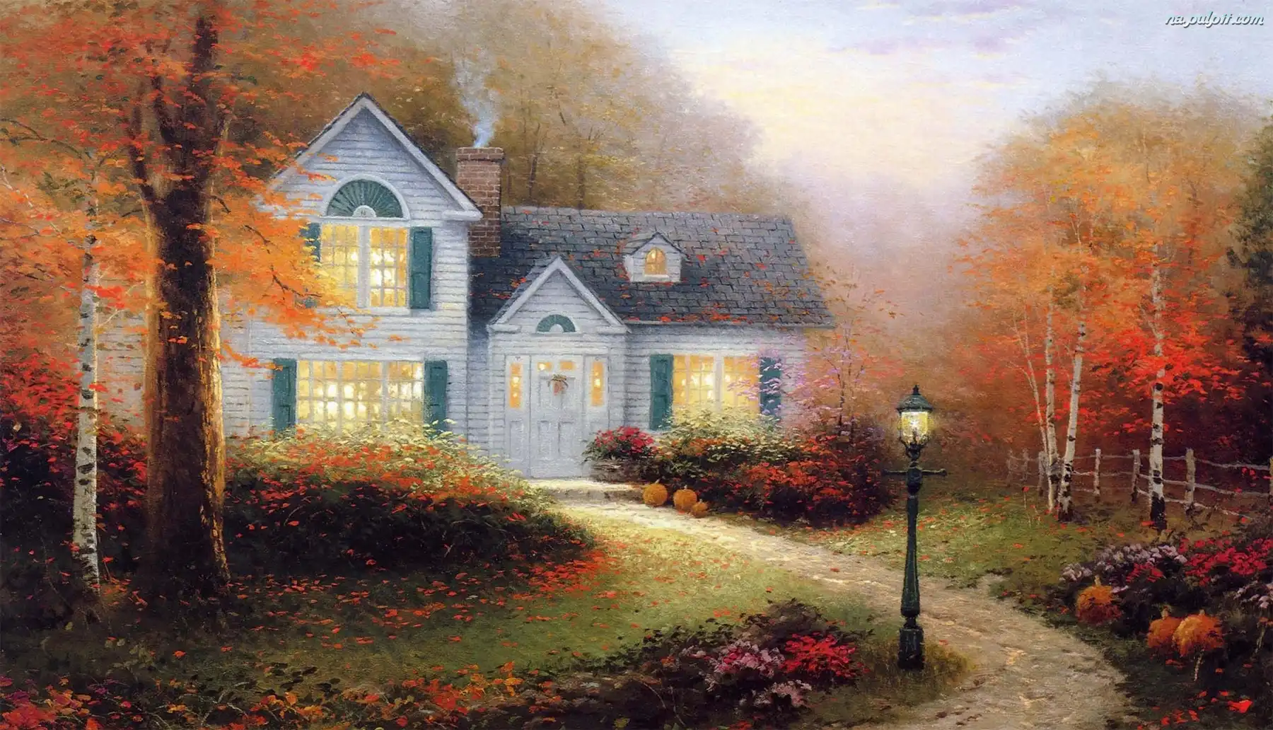 Drzewa, Dworek, Obraz, Latarnia Na Pulpit