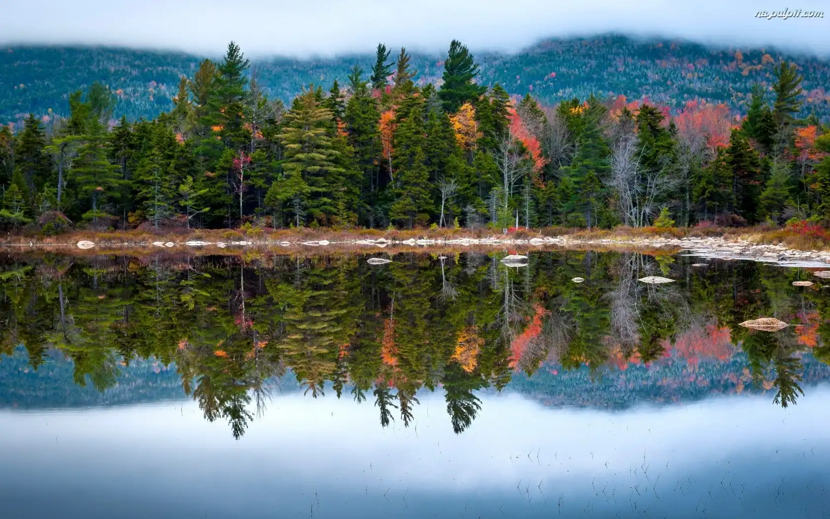 Odbicie, Drzewa, Jezioro Na Pulpit