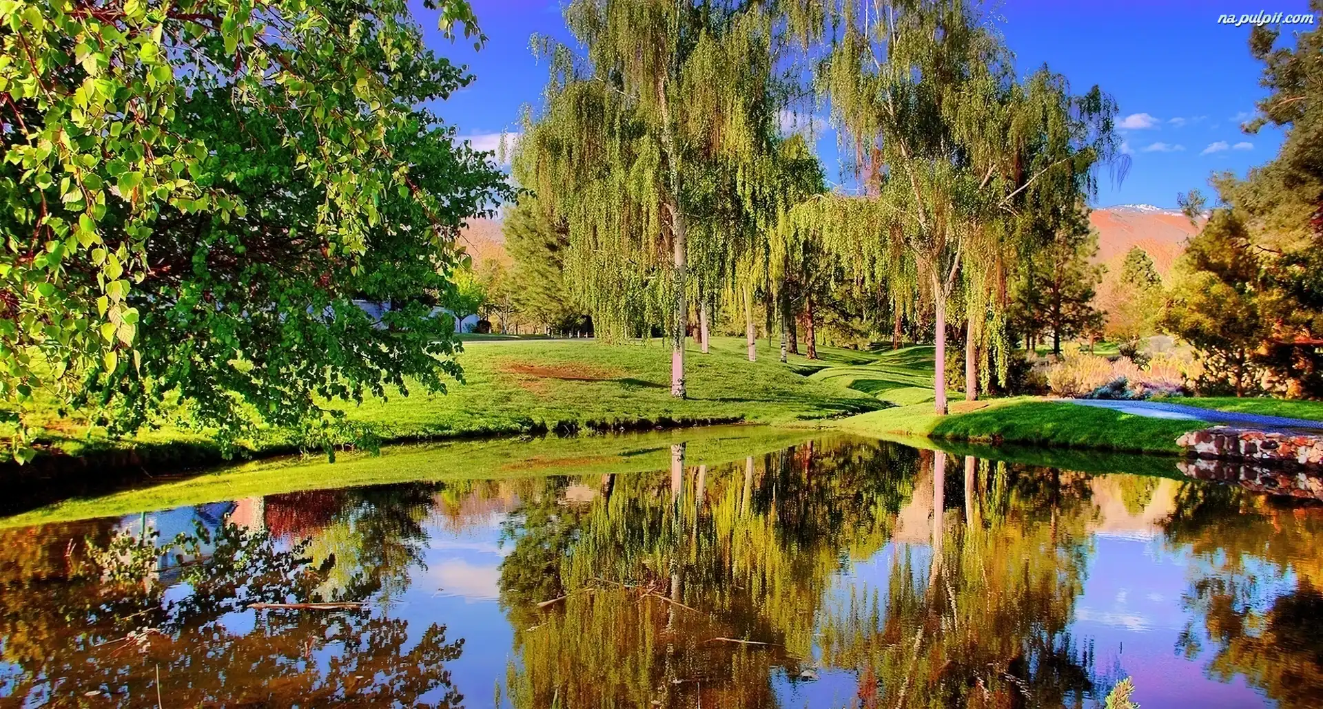 Odbicie, Drzewa, Jezioro Na Pulpit