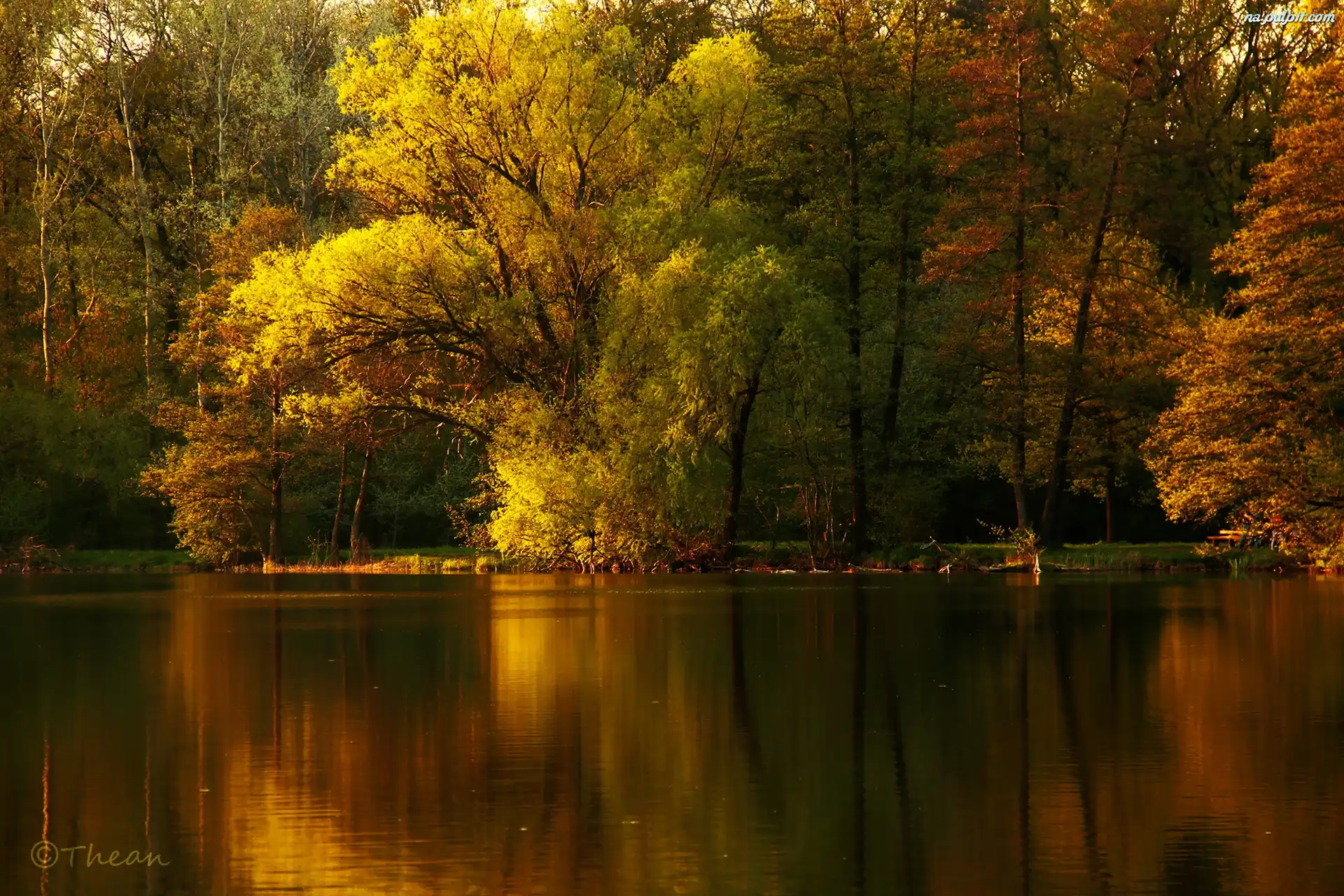 Odbicie, Drzewa, Jezioro Na Pulpit