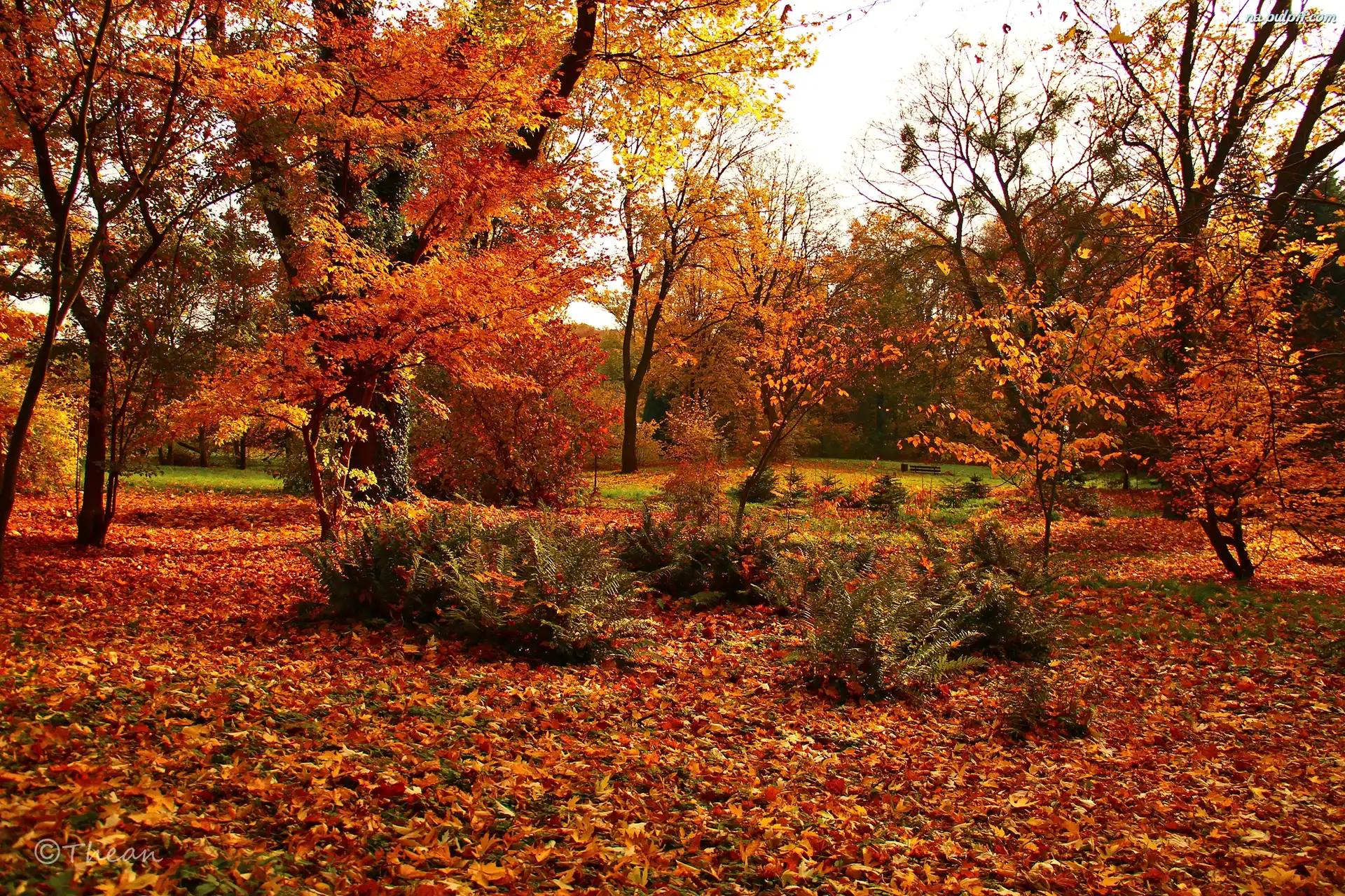 Drzewa, Kolorowe, Jesień, Ogród, Liście