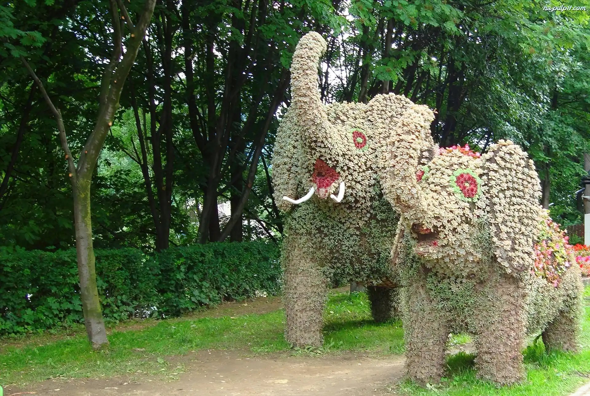 Drzewa, Słonie, Ogród, Żywopłot Na Pulpit