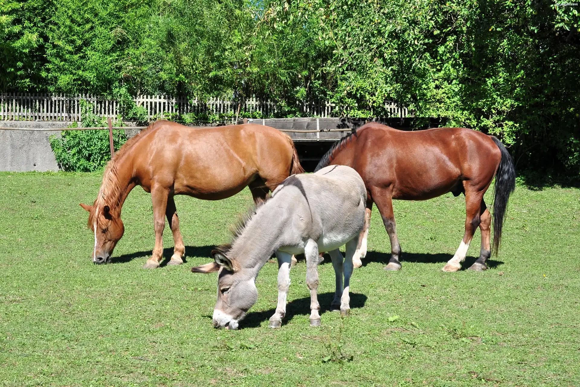 Drzewa, Konie, Dwa, Osiołek, Łąka Na Pulpit