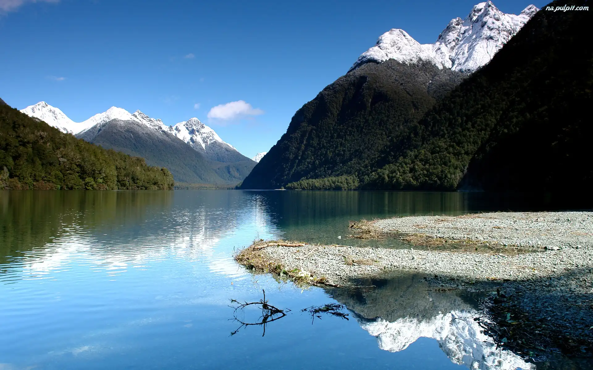 Drzewa, Góry, Szczyty, Ośnieżone, Jezioro Na Pulpit