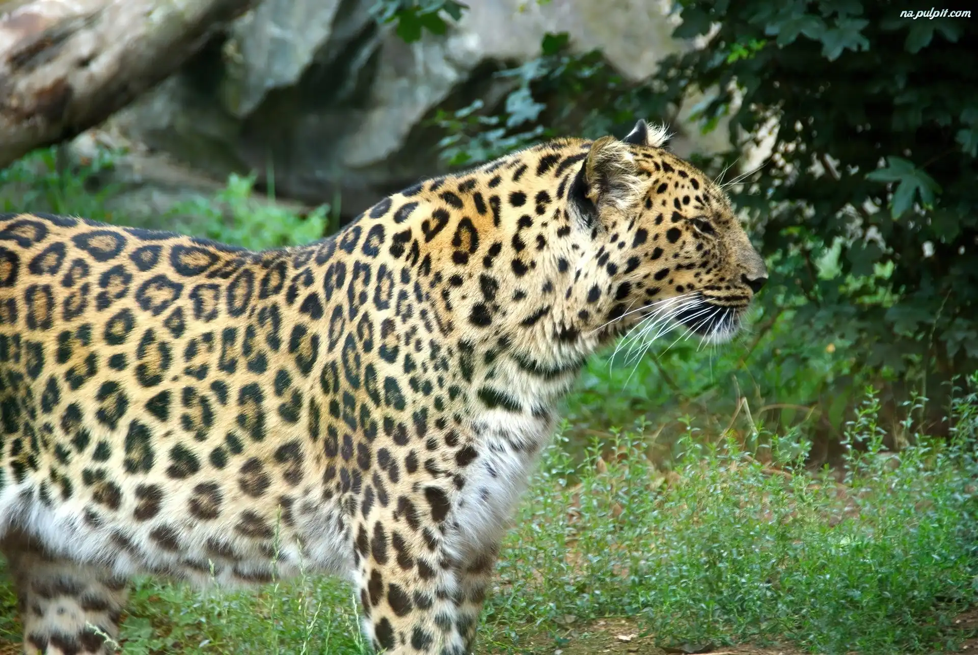 Drzewa, Zielona, Pantera, Trawa Na Pulpit