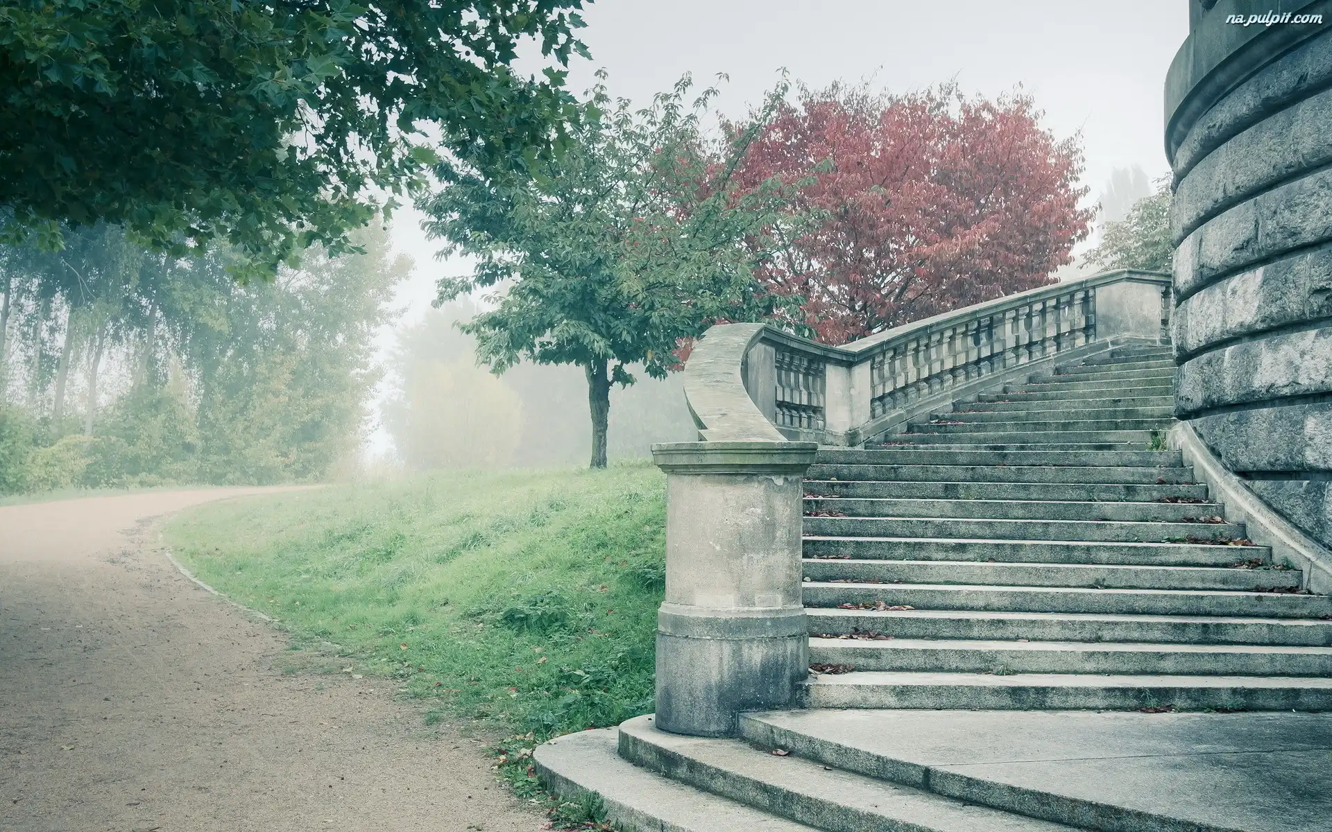 Drzewa, Aleja, Park, Schody Na Pulpit