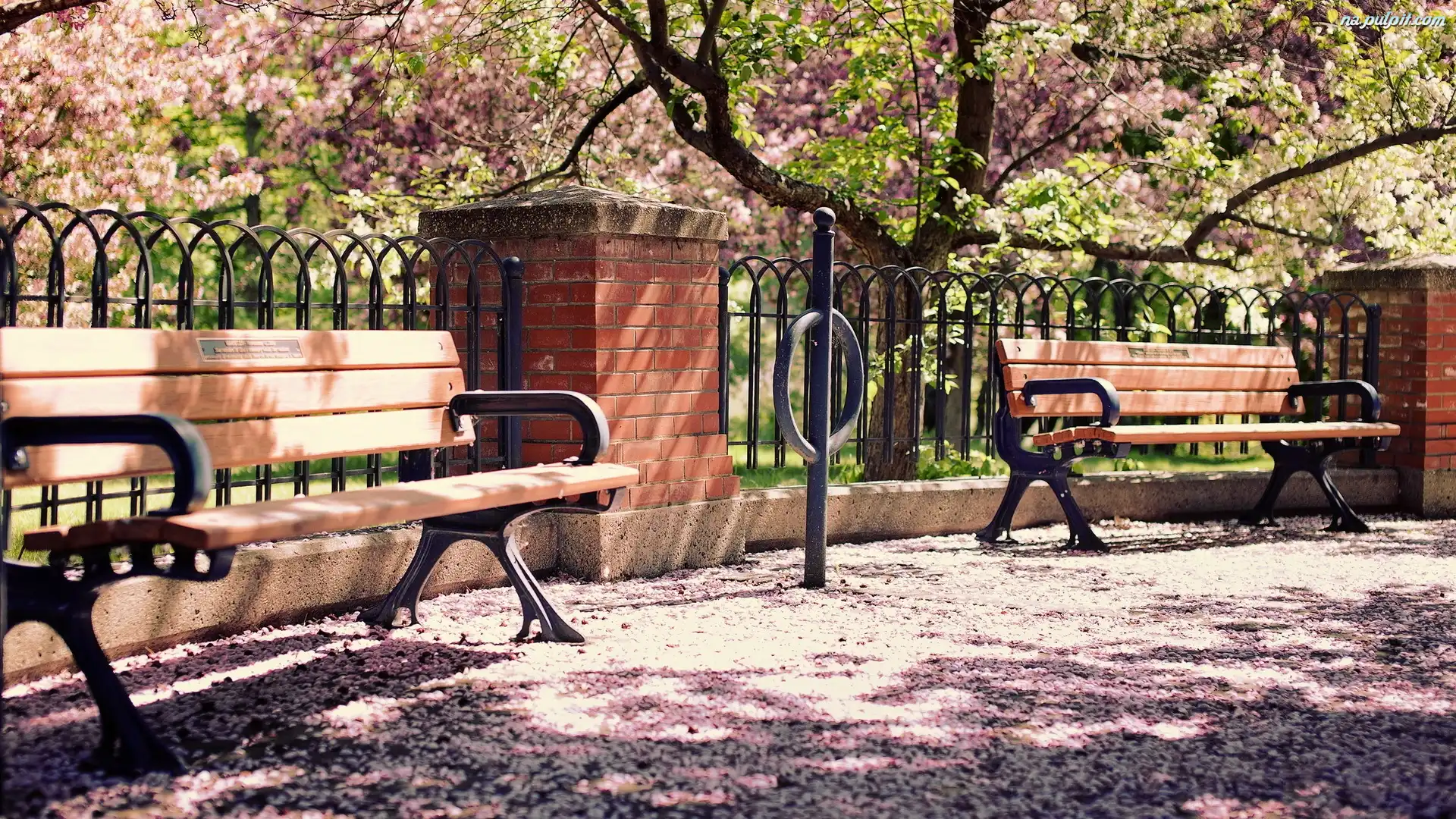 Drzewa, Ławeczki, Park, Płotek Na Pulpit