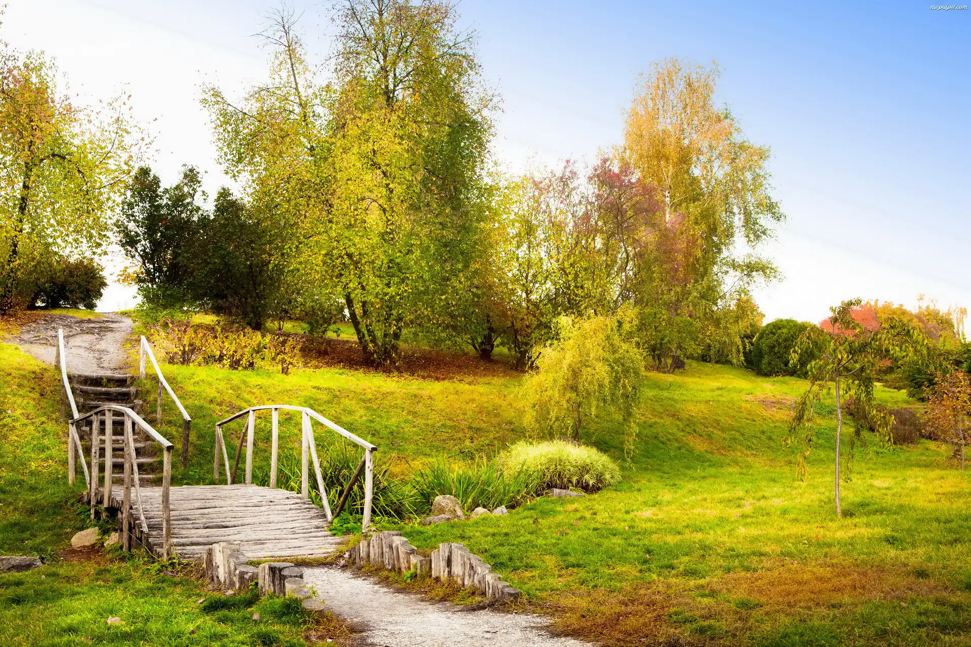 Drzewa, Mostek, Park, Drewniany