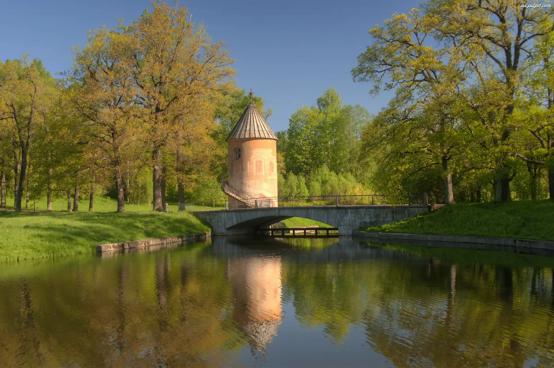 Drzewa, Rzeka, Park, Mostek Na Pulpit
