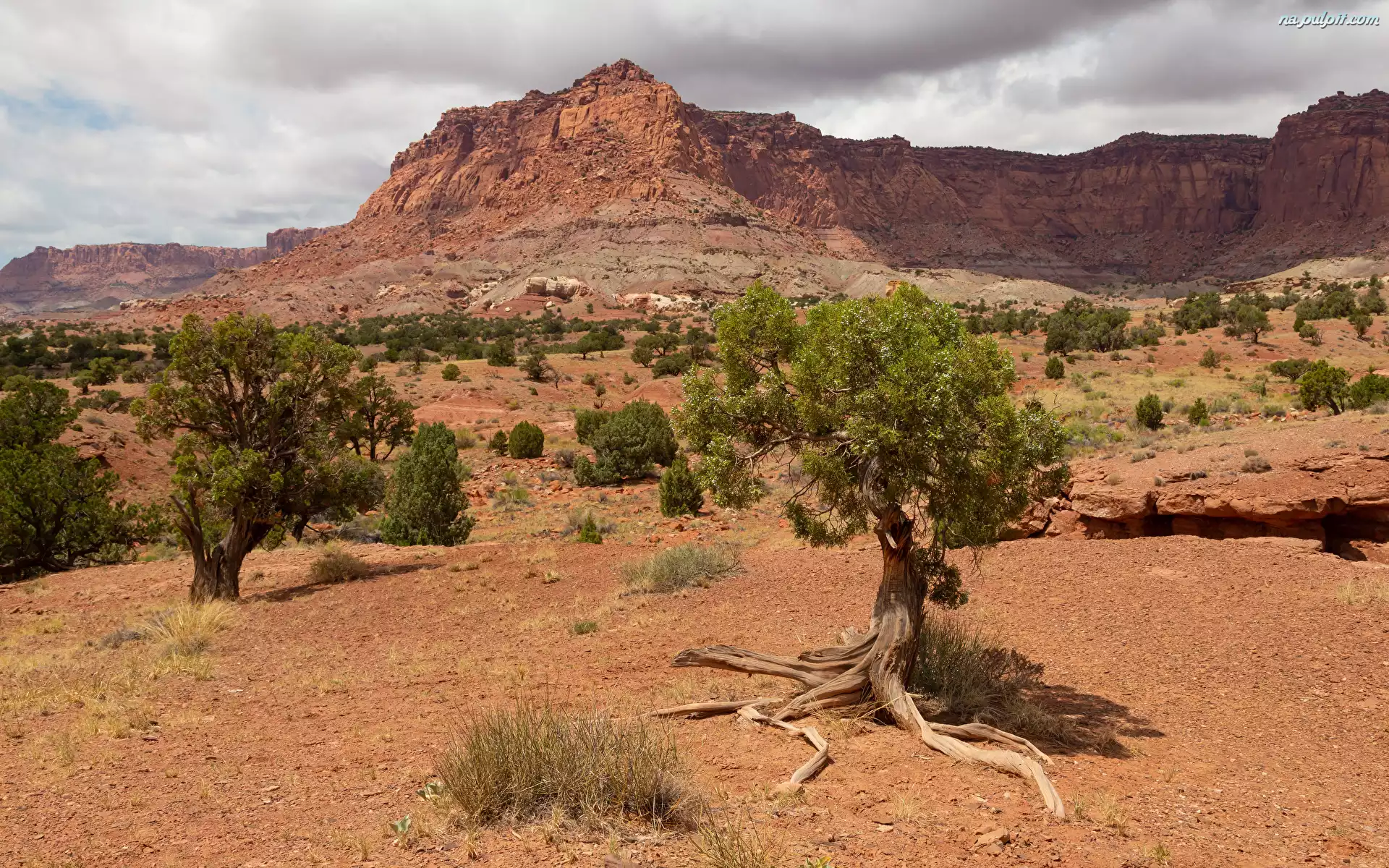 Skały, Utah, Stany Zjednoczone, Park Narodowy Capitol Reef, Góry, Drzewa Na Pulpit