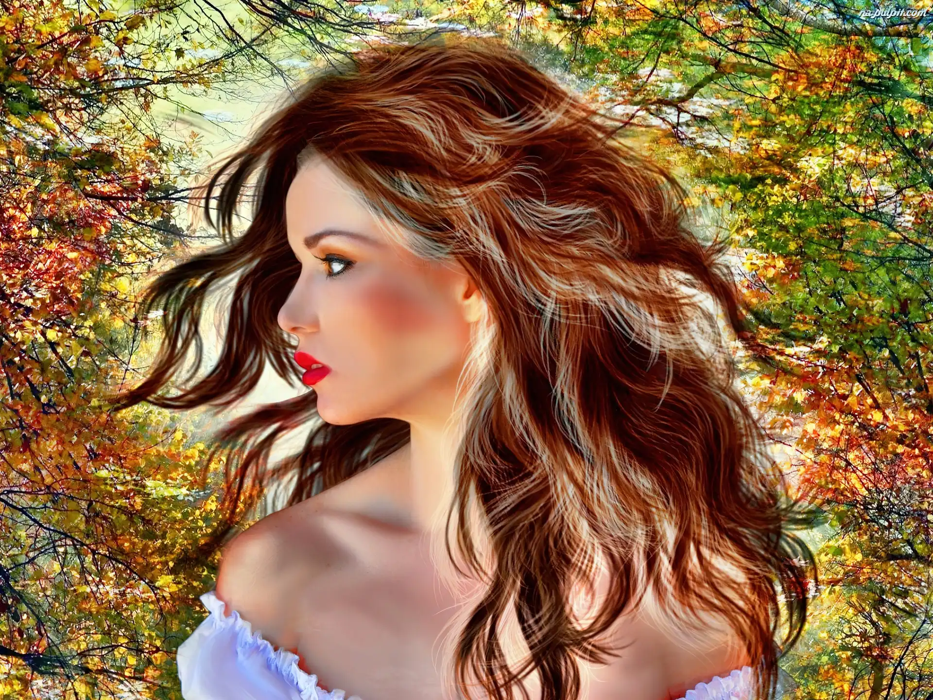Drzewa, Kobieta, Piękna, Jesienne Na Pulpit