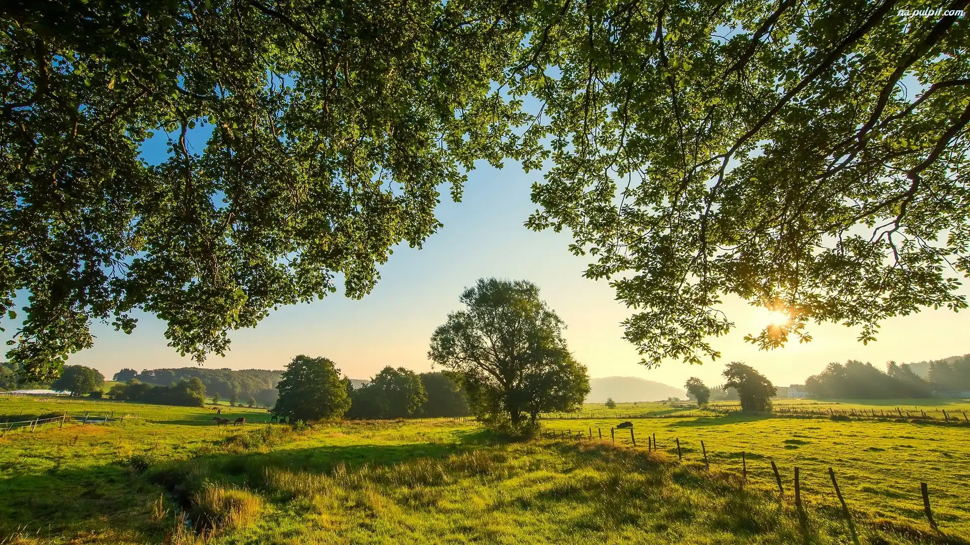 Drzewa, Łąki, Pola, Ogrodzenie Na Pulpit