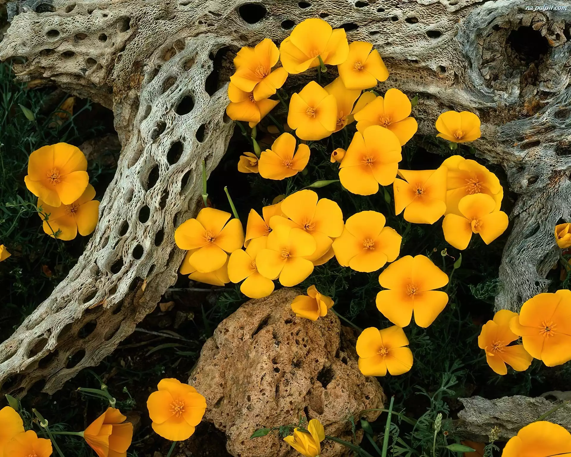Drzewa, Kwiatki, Pomarańczowe, Korzeń