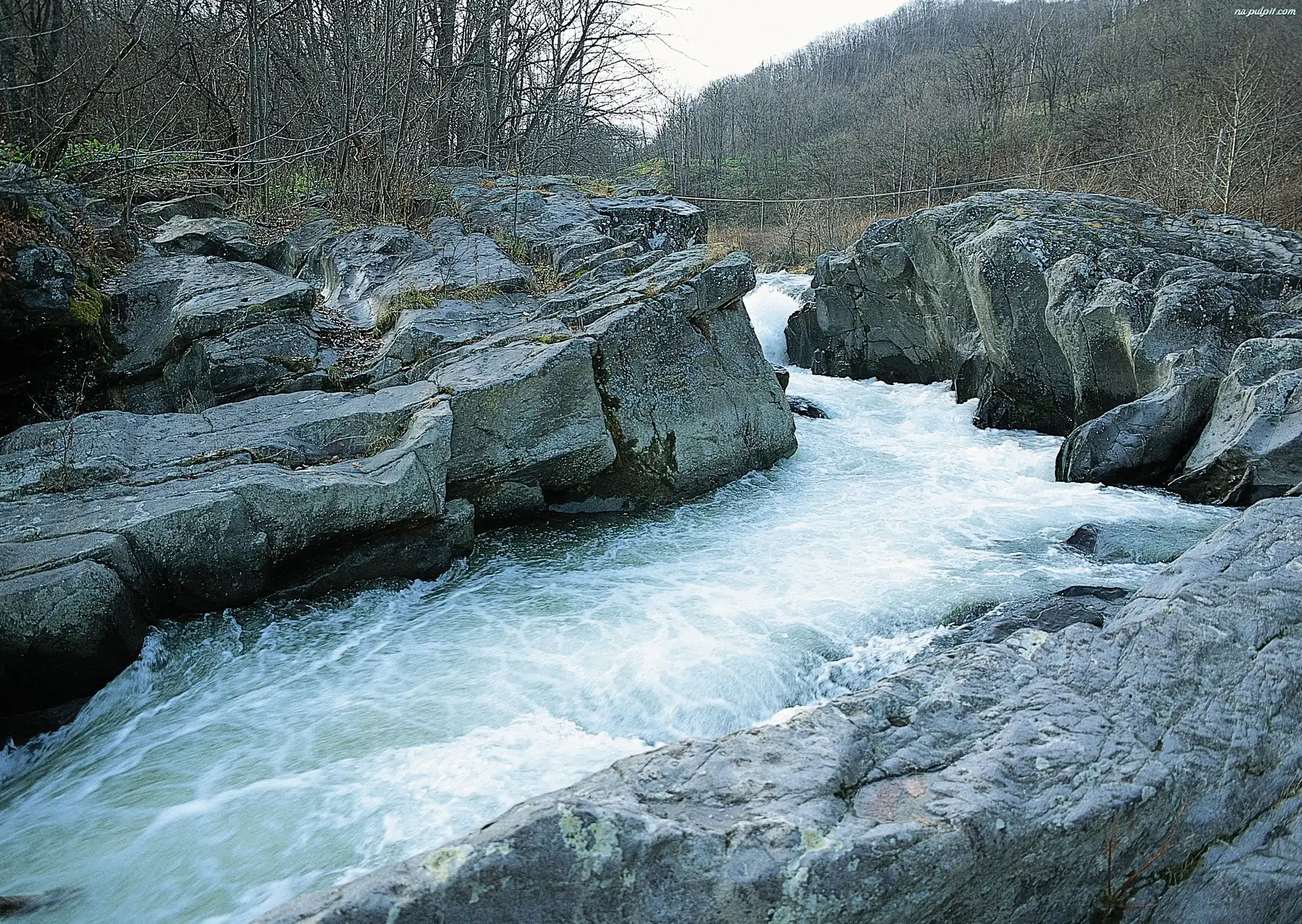 Drzewa, Rzeka, Rwąca, Skały Na Pulpit