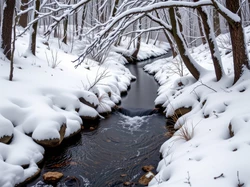 Las, Zima, Gałęzie, Drzewa, Ośnieżone, Rzeka