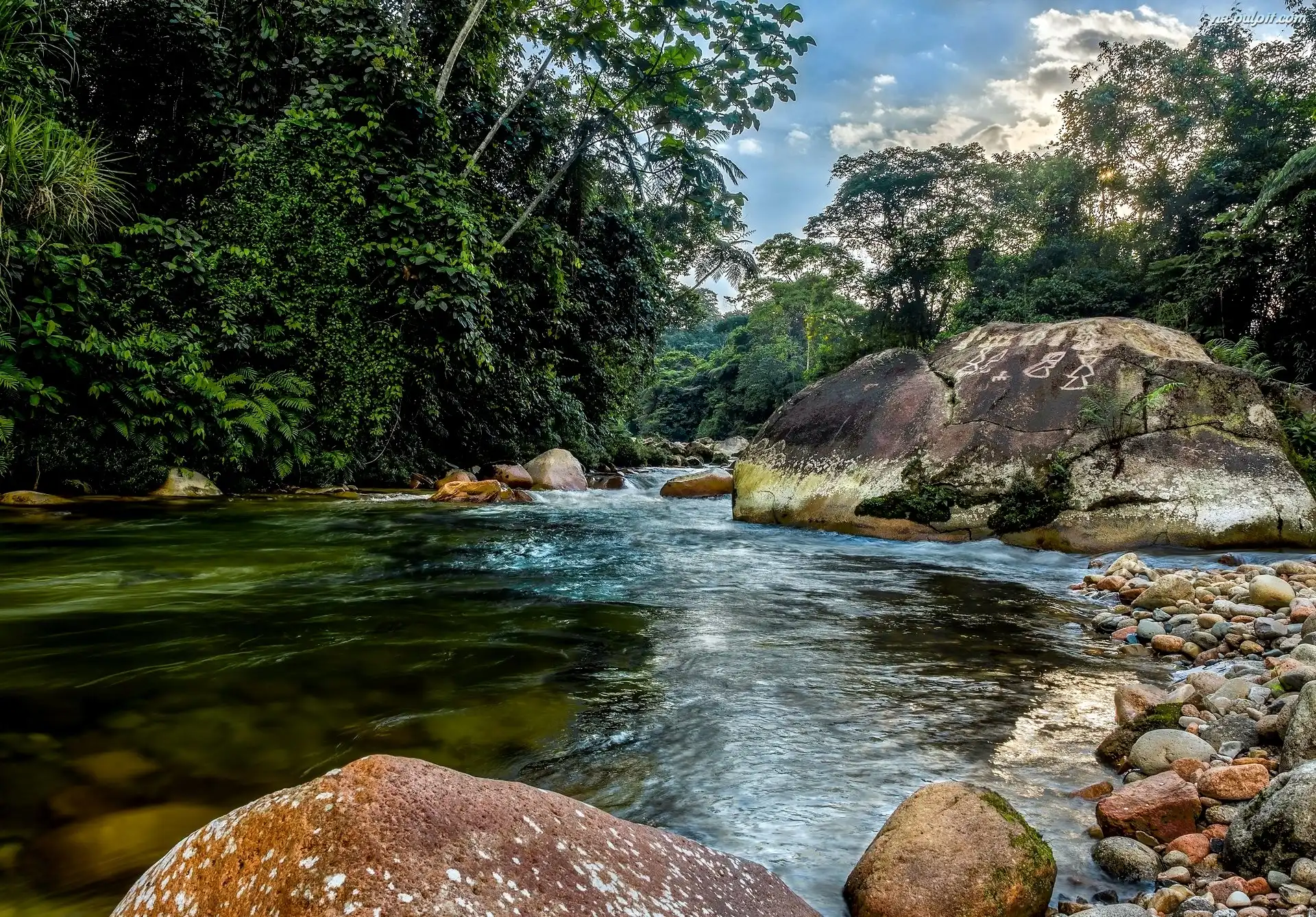 Drzewa, Głazy, Rzeka, Kamienie Na Pulpit