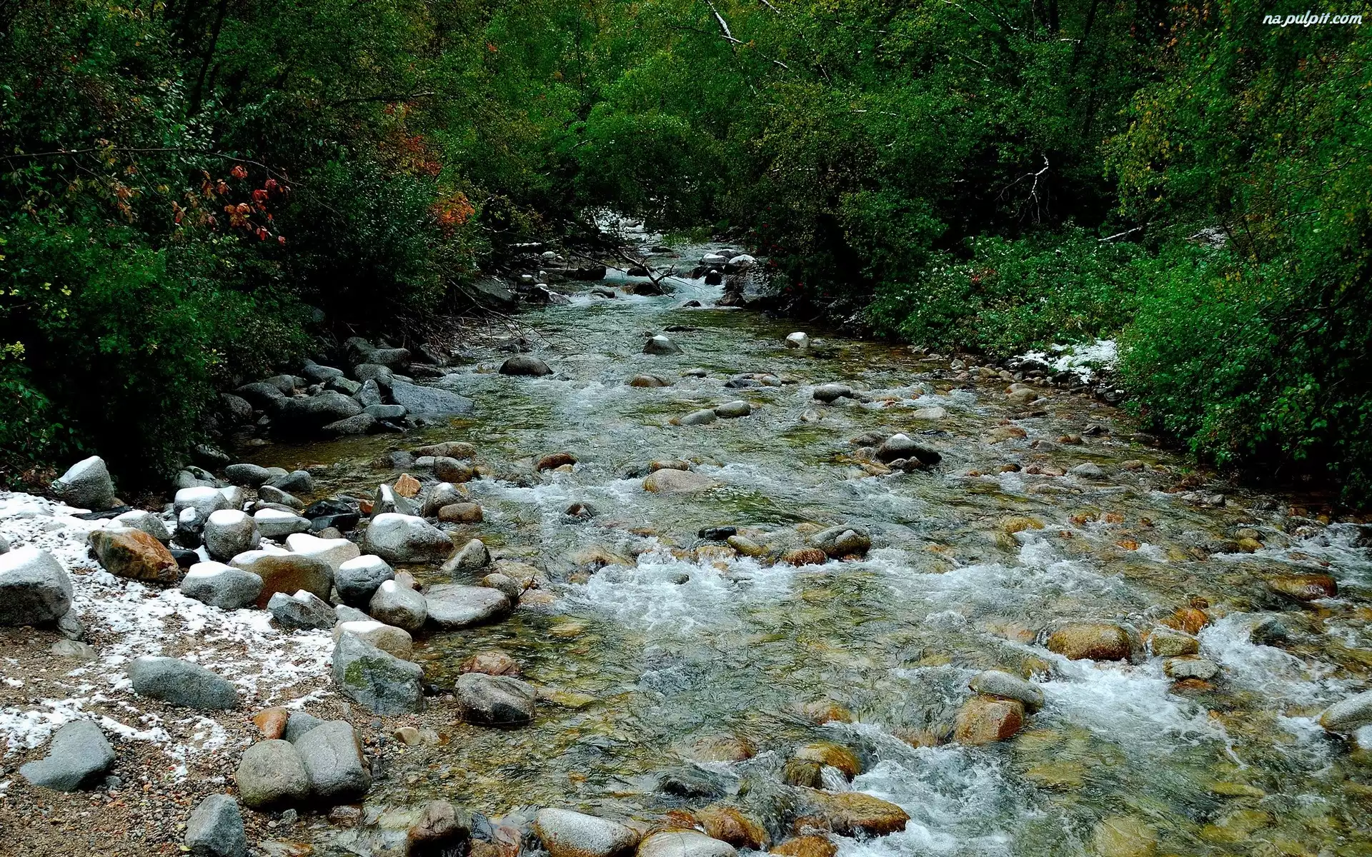 Rzeka, Drzewa, Kamienie Na Pulpit