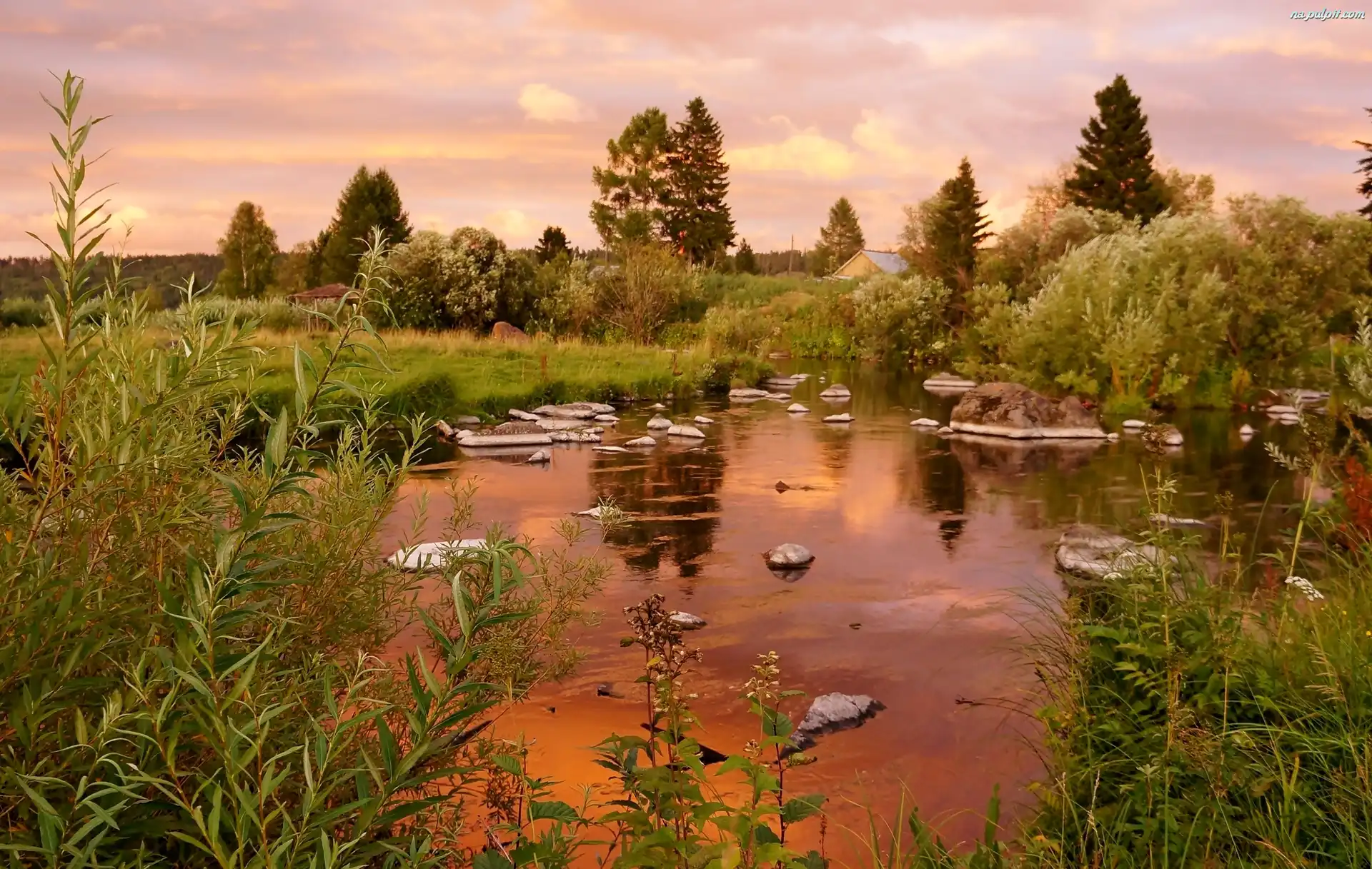 Drzewa, Kamienie, Rzeka, Rośliny Na Pulpit