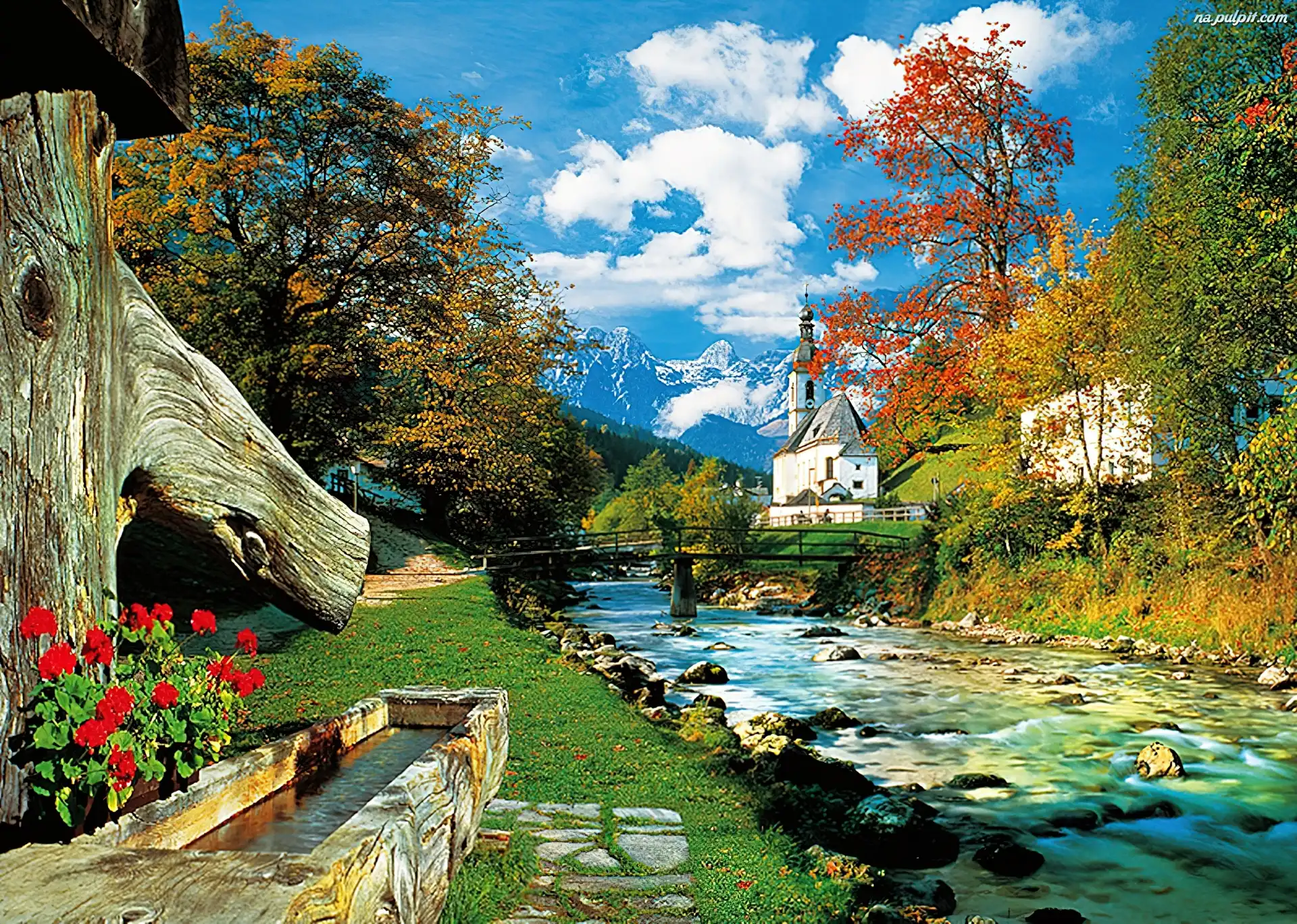 Drzewa, Mostek, Rzeka, Kościółek Na Pulpit