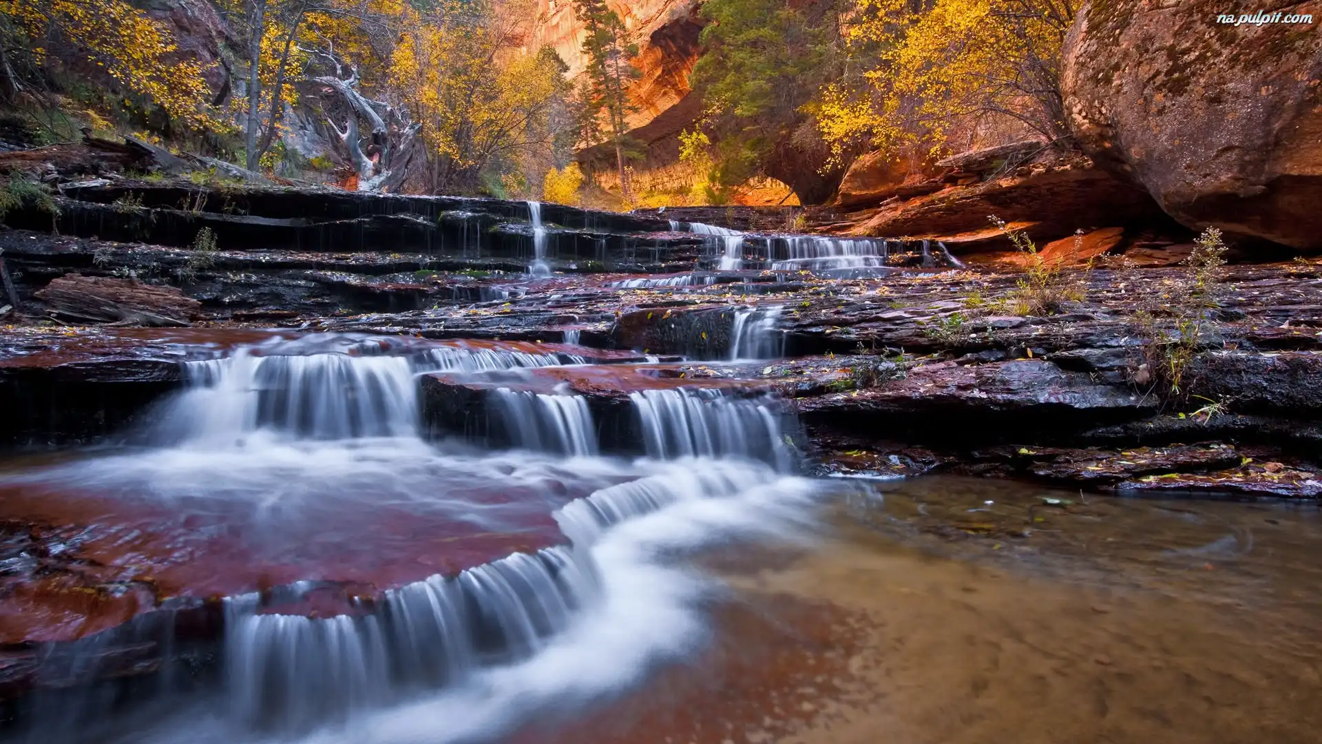 Drzewa, Rwąca, Rzeka, Skały Na Pulpit