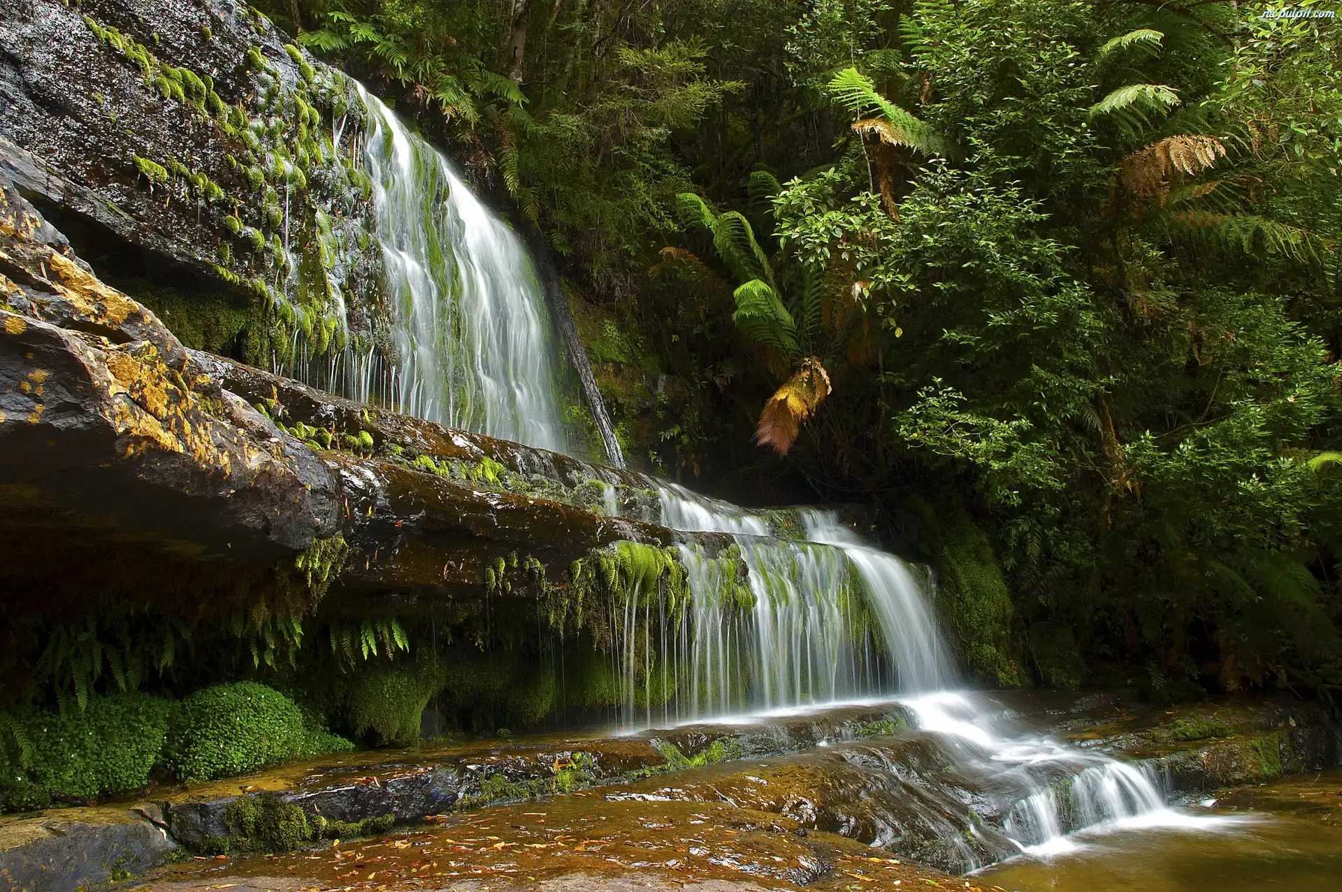 Drzewa, Wodospad, Rzeka, Skały Na Pulpit
