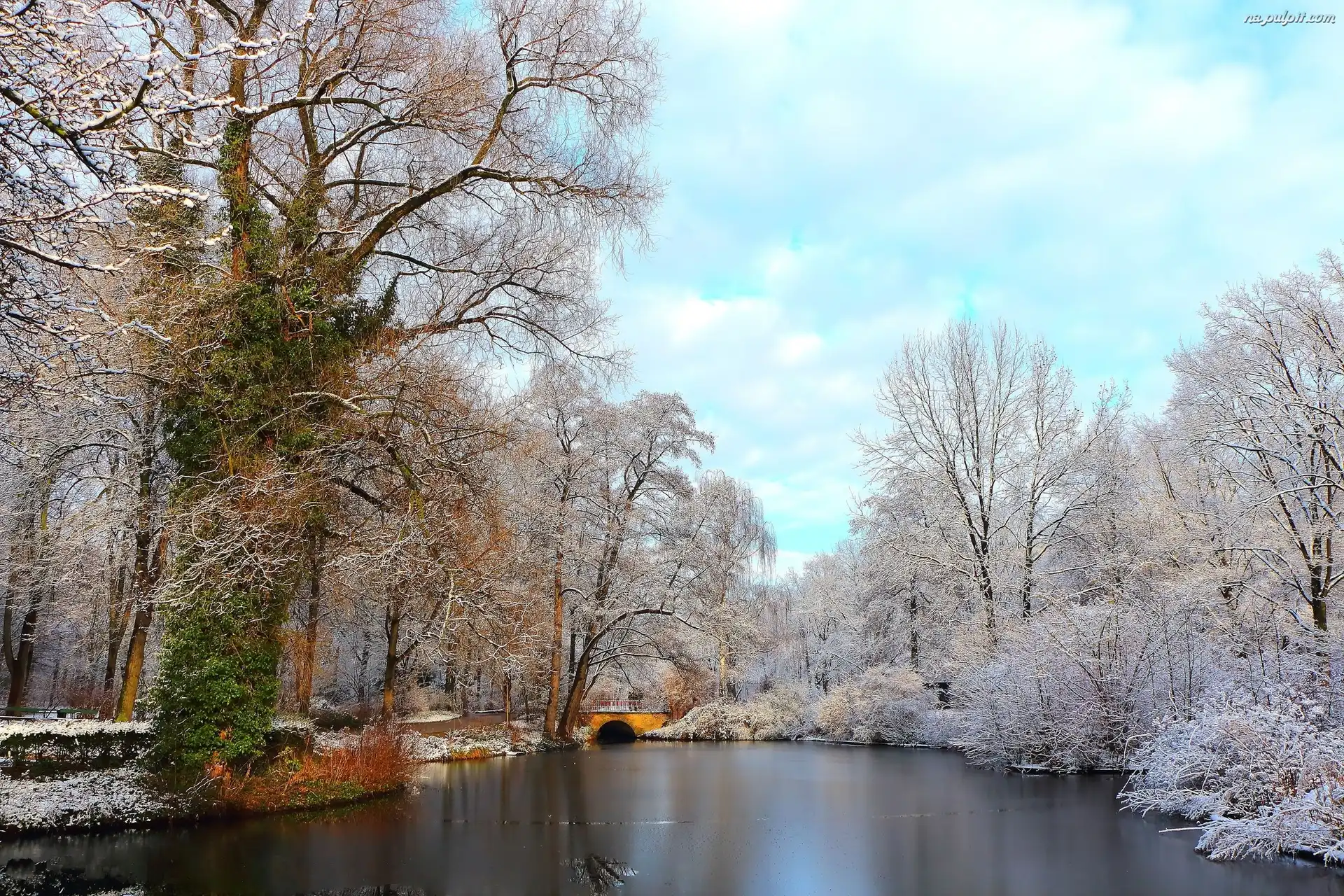 Drzewa, Zima, Rzeka, Ośnieżone Na Pulpit
