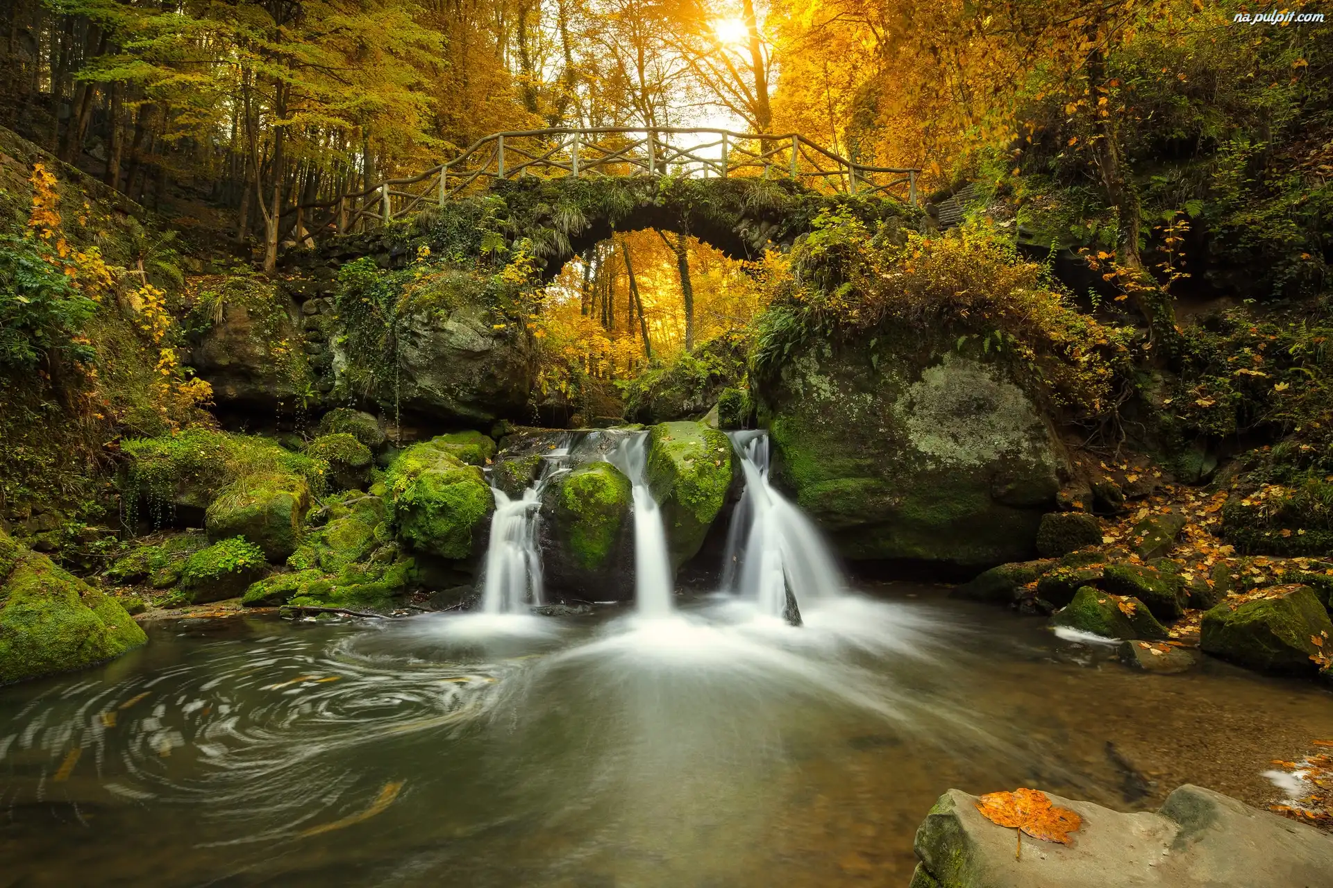 Mała Szwajcaria, Drzewa, Wodospad Schiessentumpel, Most, Mullerthal, Luksemburg, Rzeka, Las, Skały Na Pulpit |