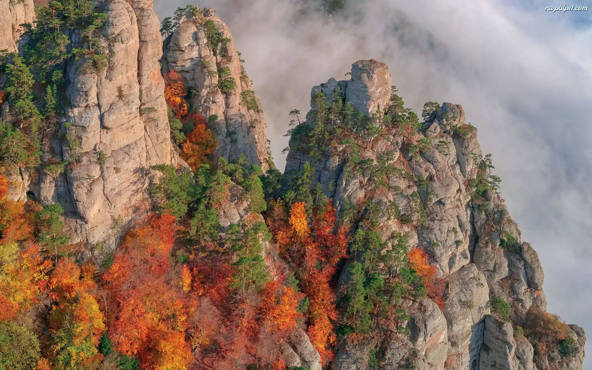 Roślinność, Masyw Demerdżi, Krym, Skały, Mgła, Jesienne, Góry Krymskie, Drzewa Na Pulpit