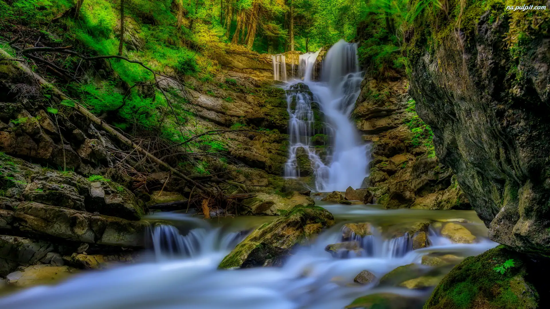 Drzewa, Powalone, Drzewo, Wodospad, Skały, Rzeka Na Pulpit