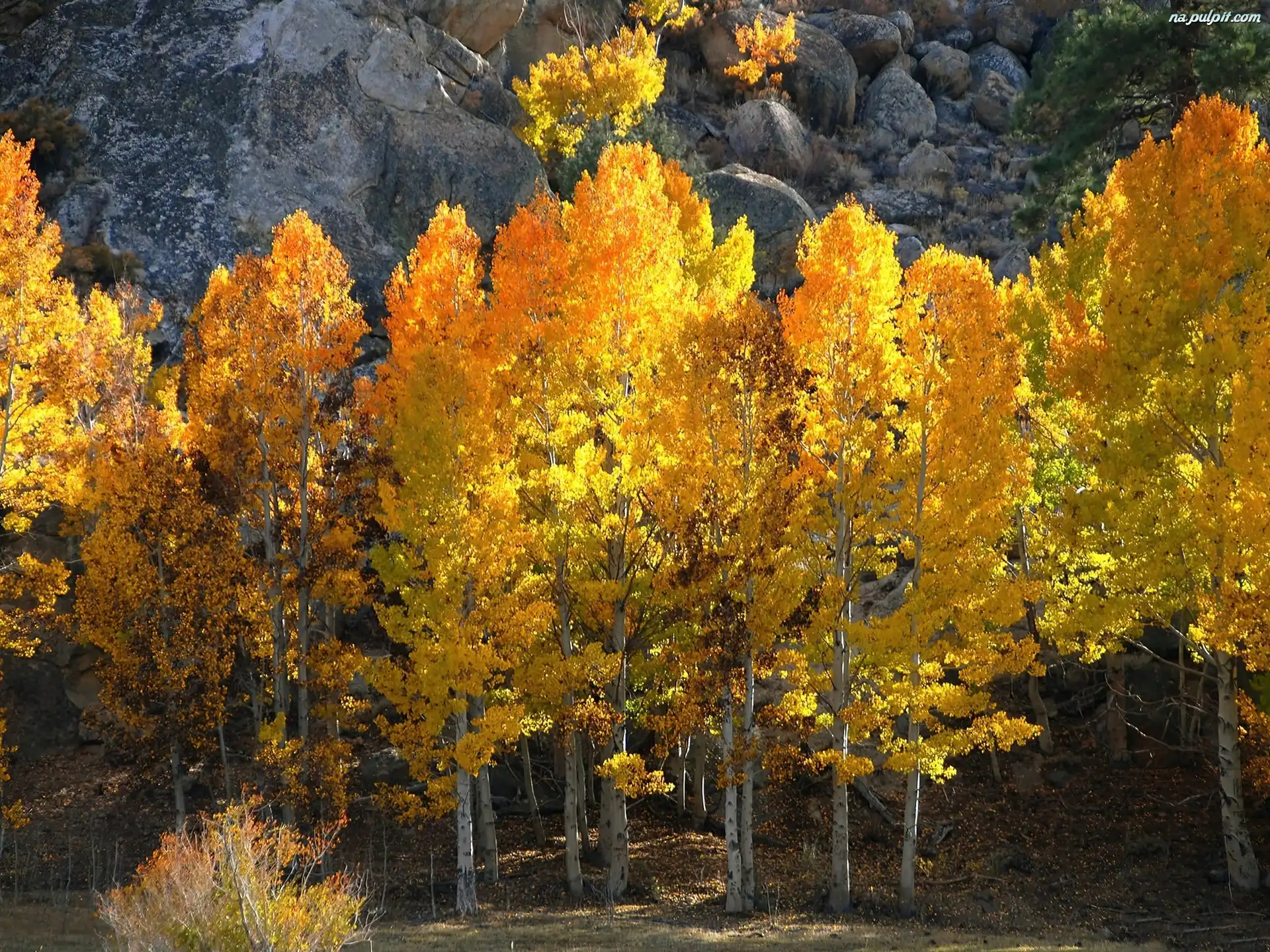 Drzewa, Jesienne, Skały, Złote Na Pulpit