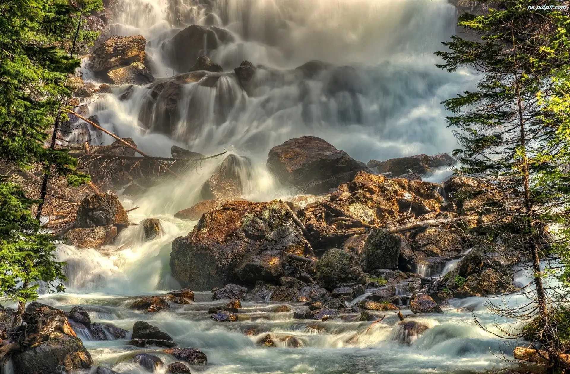 Drzewa, Wodospad, Skały, Kamienie Na Pulpit