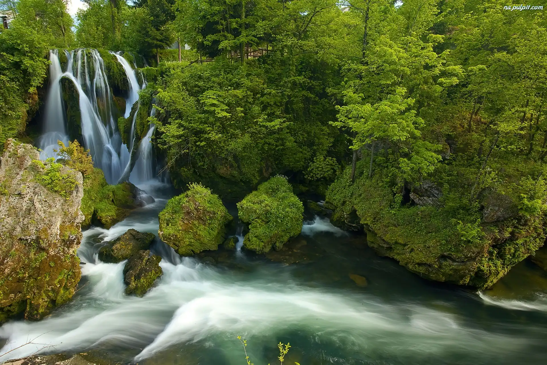 Drzewa, Wodospad, Zieleń, Górska, Skały, Rzeka Na Pulpit