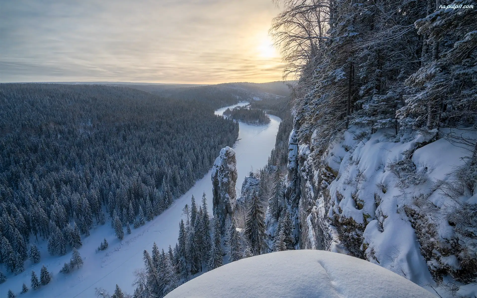 Słupy Usvinsky, Rzeka Usva, Lasy, Drzewa, Kraj Permski, Rosja, Góry, Zima, Skały Na Pulpit