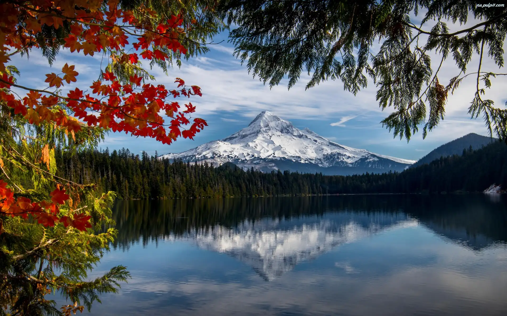 Stan Oregon, Jezioro Lost Lake, Drzewa, Góra, Stany Zjednoczone, Stratowulkan Mount Hood Na Pulpit