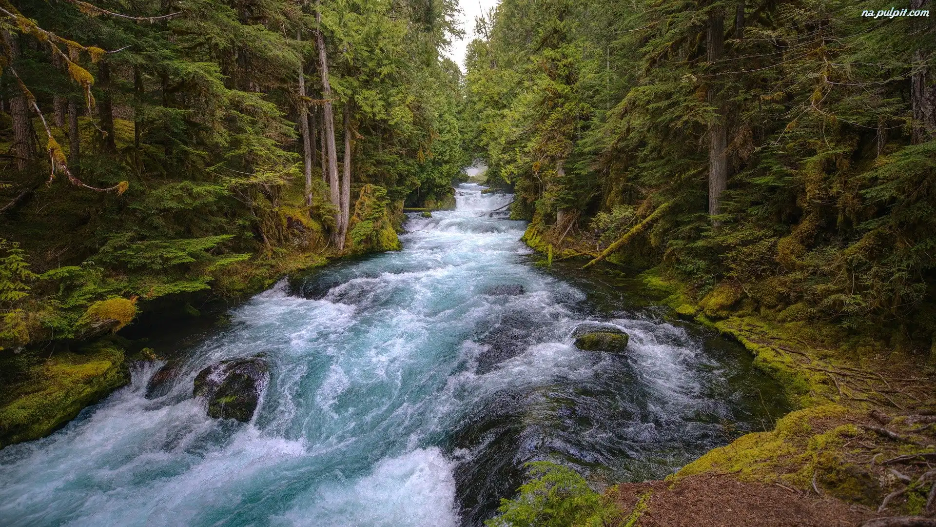 McKenzie River, Stan Oregon, Stany Zjednoczone, Las, Rzeka, Drzewa Na Pulpit