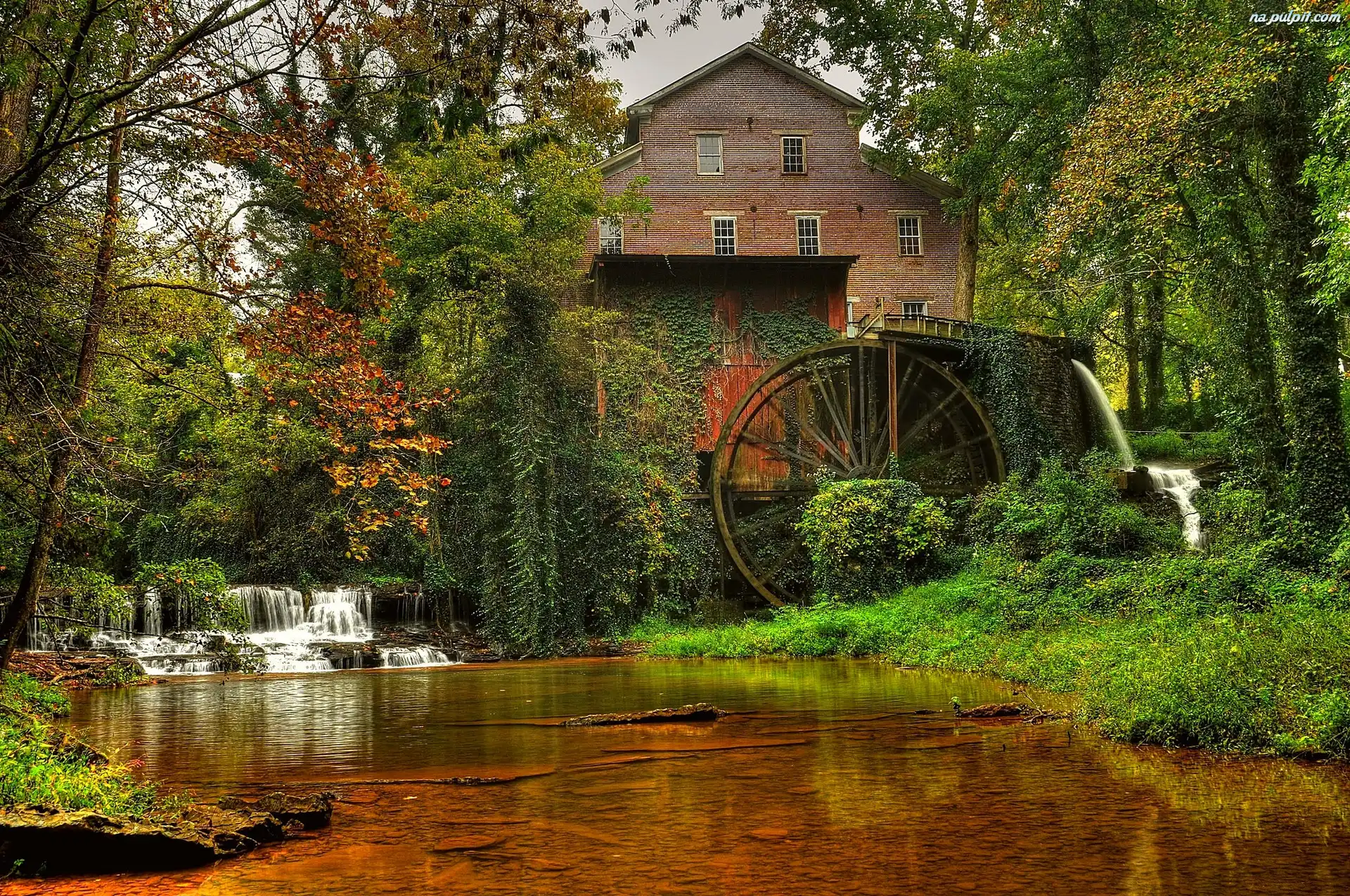 Drzewa, Rzeka, Młyn, Stary, Kaskada Na Pulpit