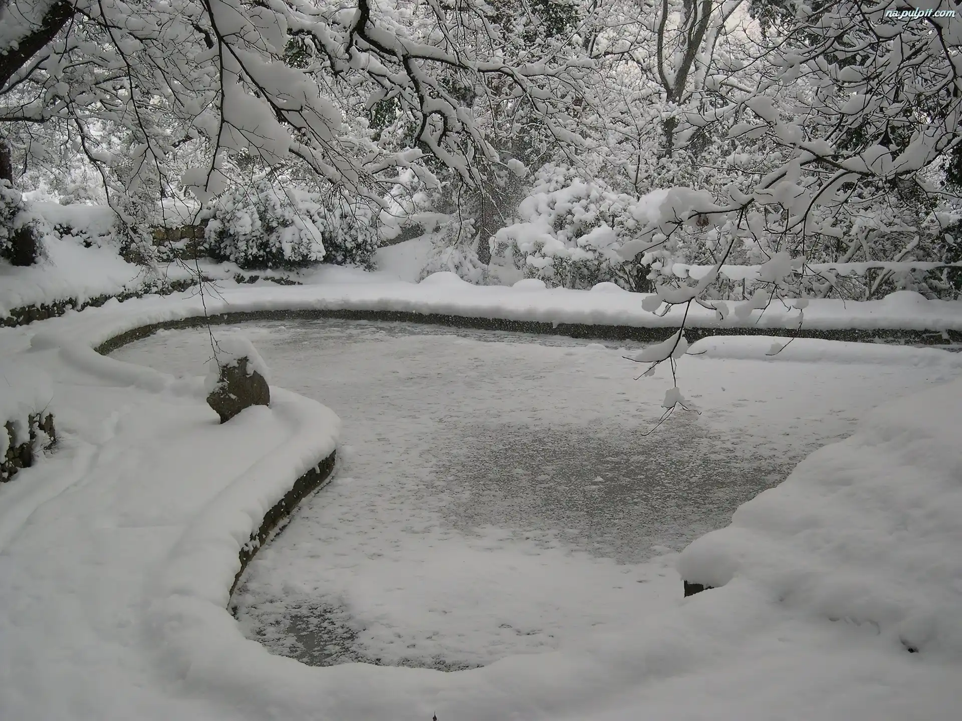 Drzewa, Serce, Staw, Åšnieg Na Pulpit
