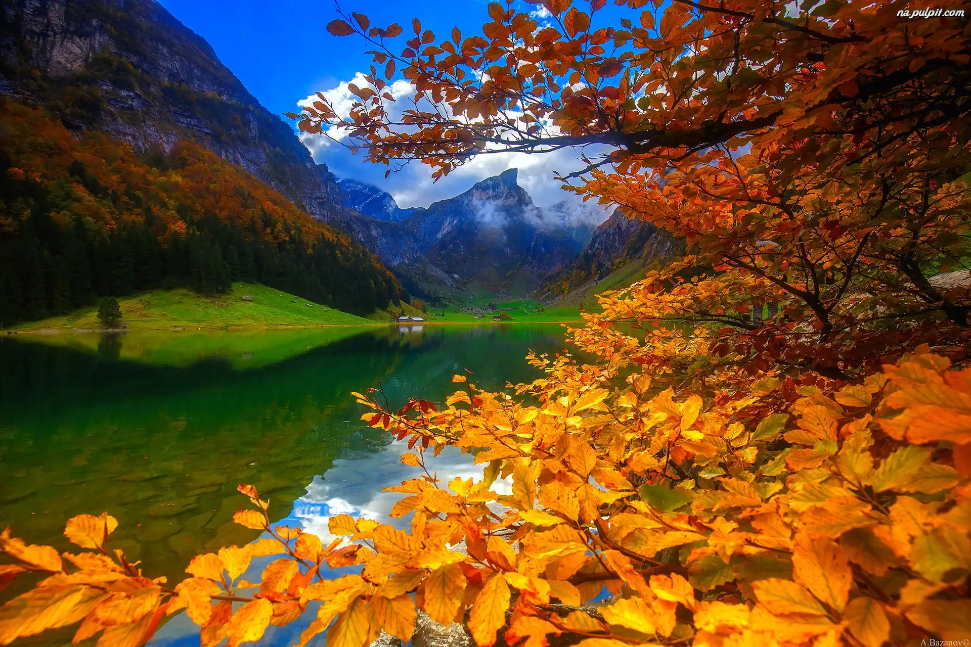 Drzewa, Jezioro, Jesień, Szwajcaria, Góry Na Pulpit