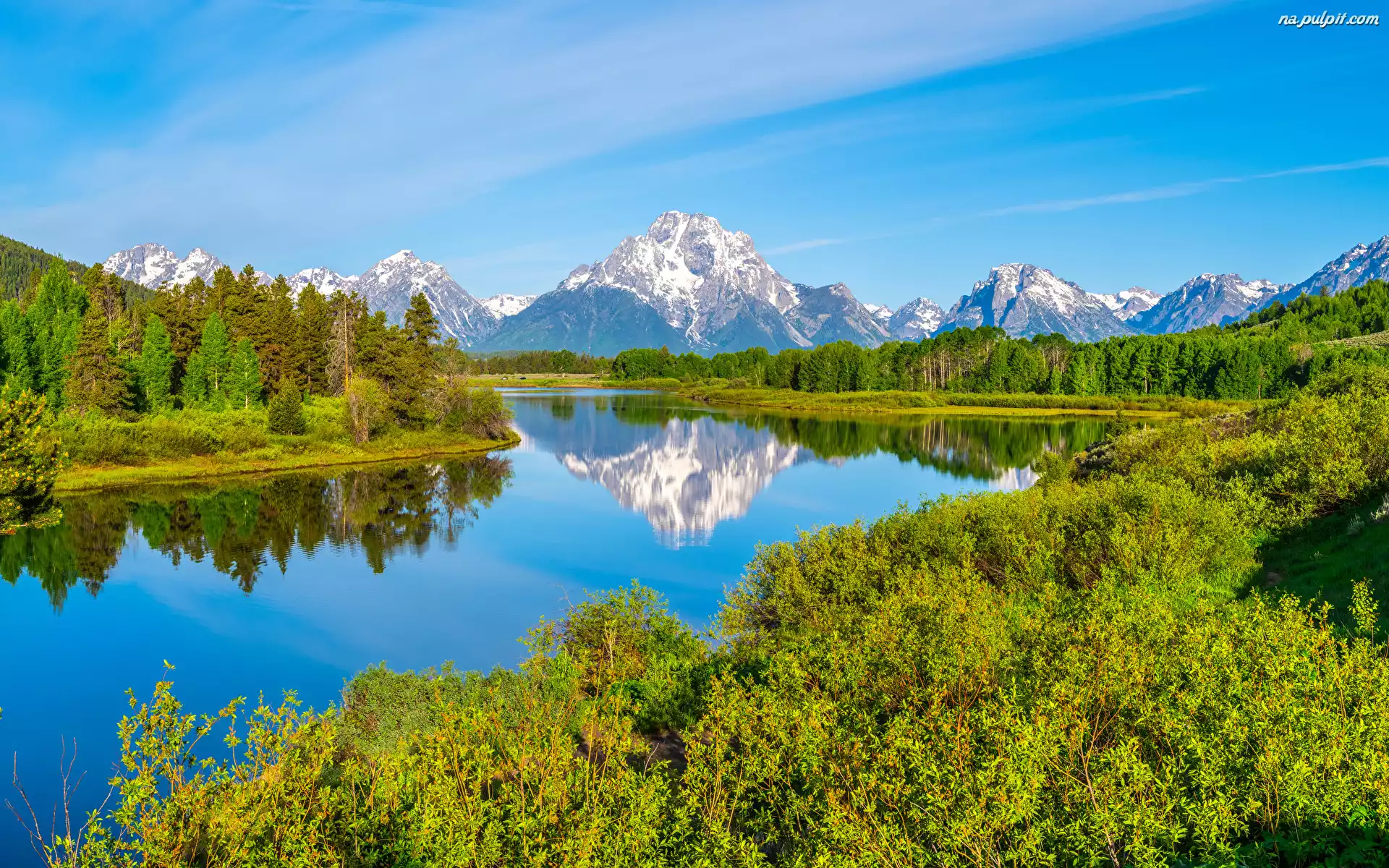 Góry, Park Narodowy Grand Teton, Rzeka, Stany Zjednoczone, Drzewa, Snake River, Stan Wyoming, Ośnieżone Na Pulpit |