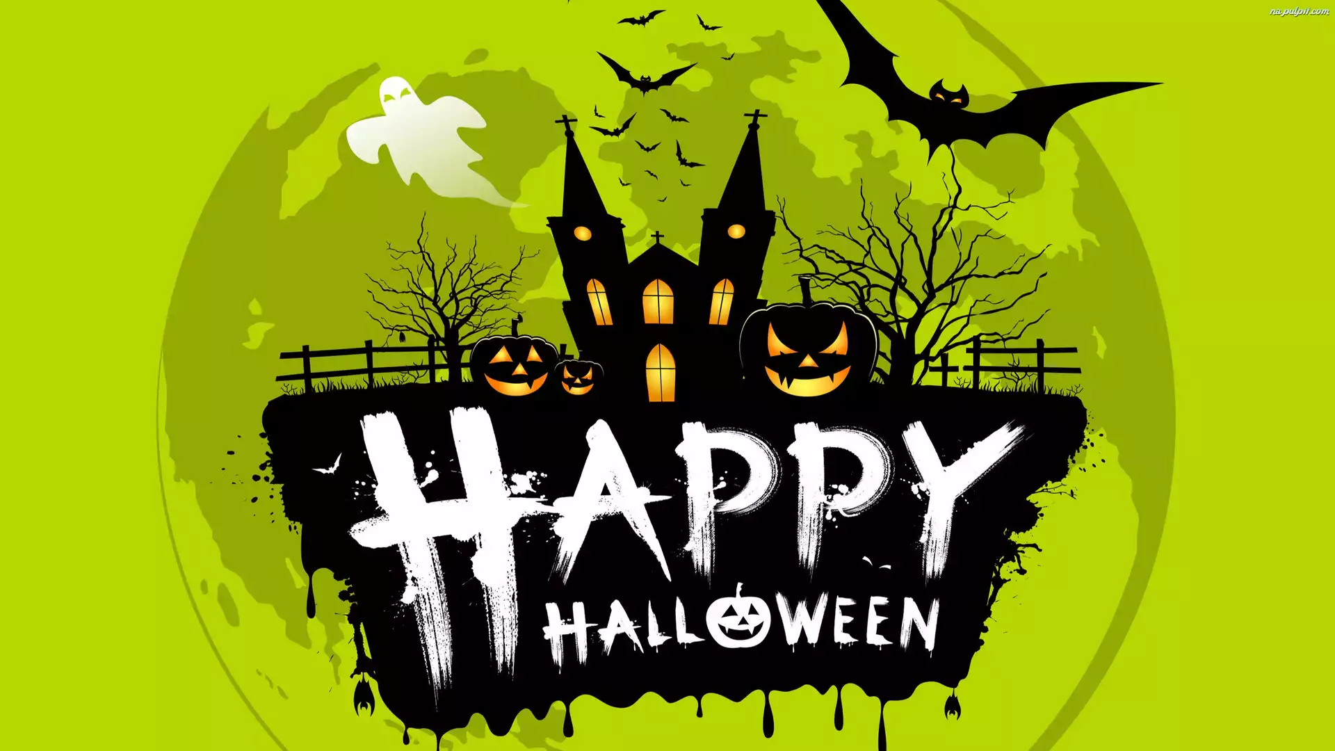 Drzewa, Płot, Happy Halloween, Dynie, Nietoperze, Zamek, Halloween, Tło, Zielone Na Pulpit