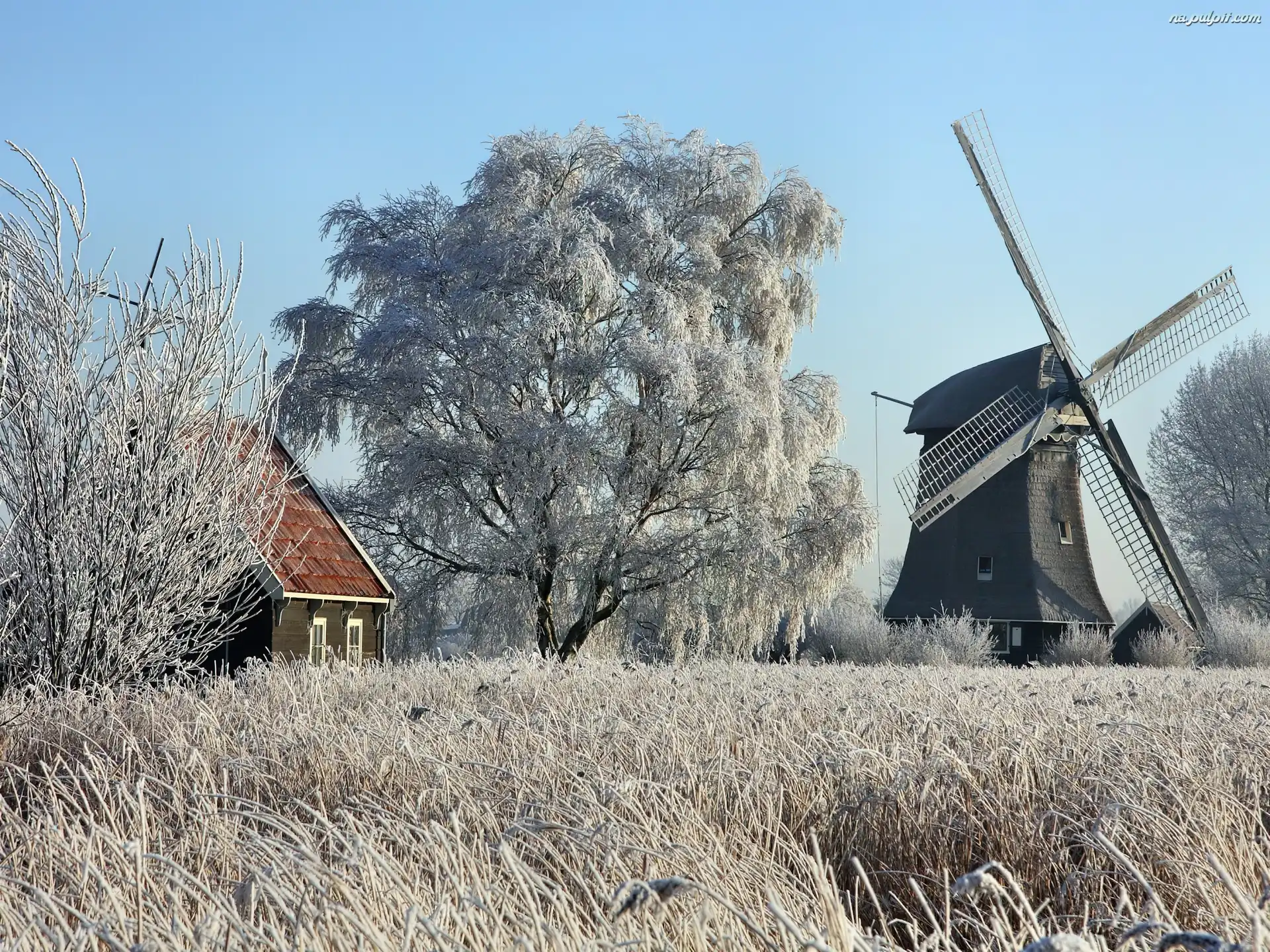 Drzewa, Oszroniona, Wiatrak, Trawa Na Pulpit