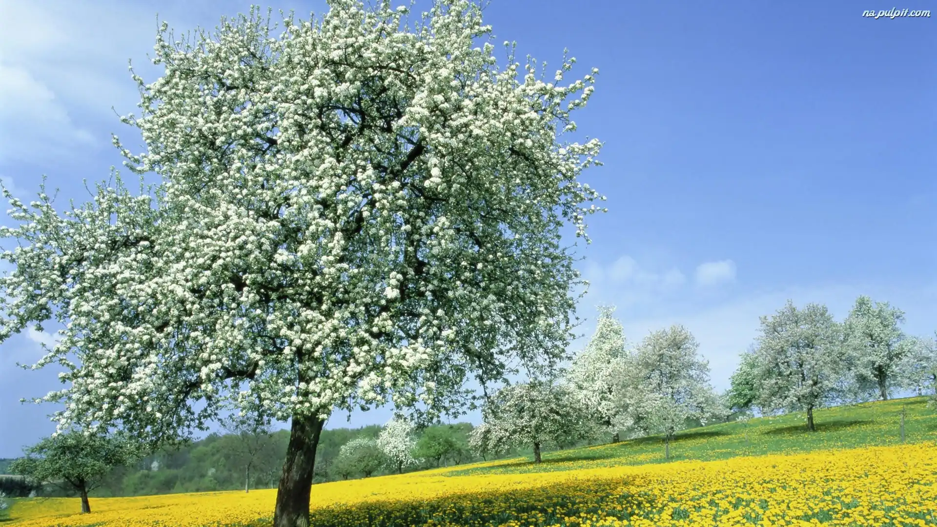 Drzewa, Łąka, Wiosna, Kwitnące Na Pulpit