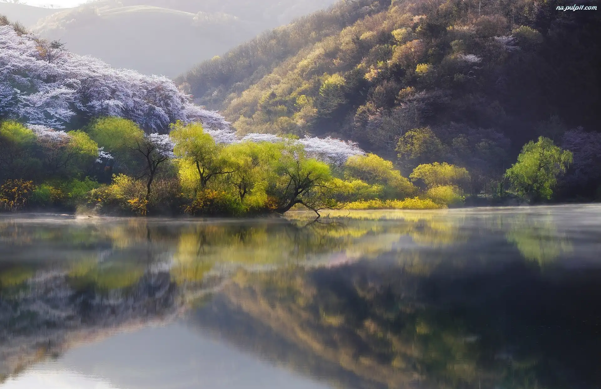 Drzewa, Jezioro, Wiosna, Las Na Pulpit