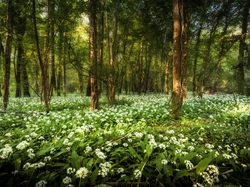 Czosnek niedźwiedzi, Las, Drzewa, Kwiaty, Wiosna