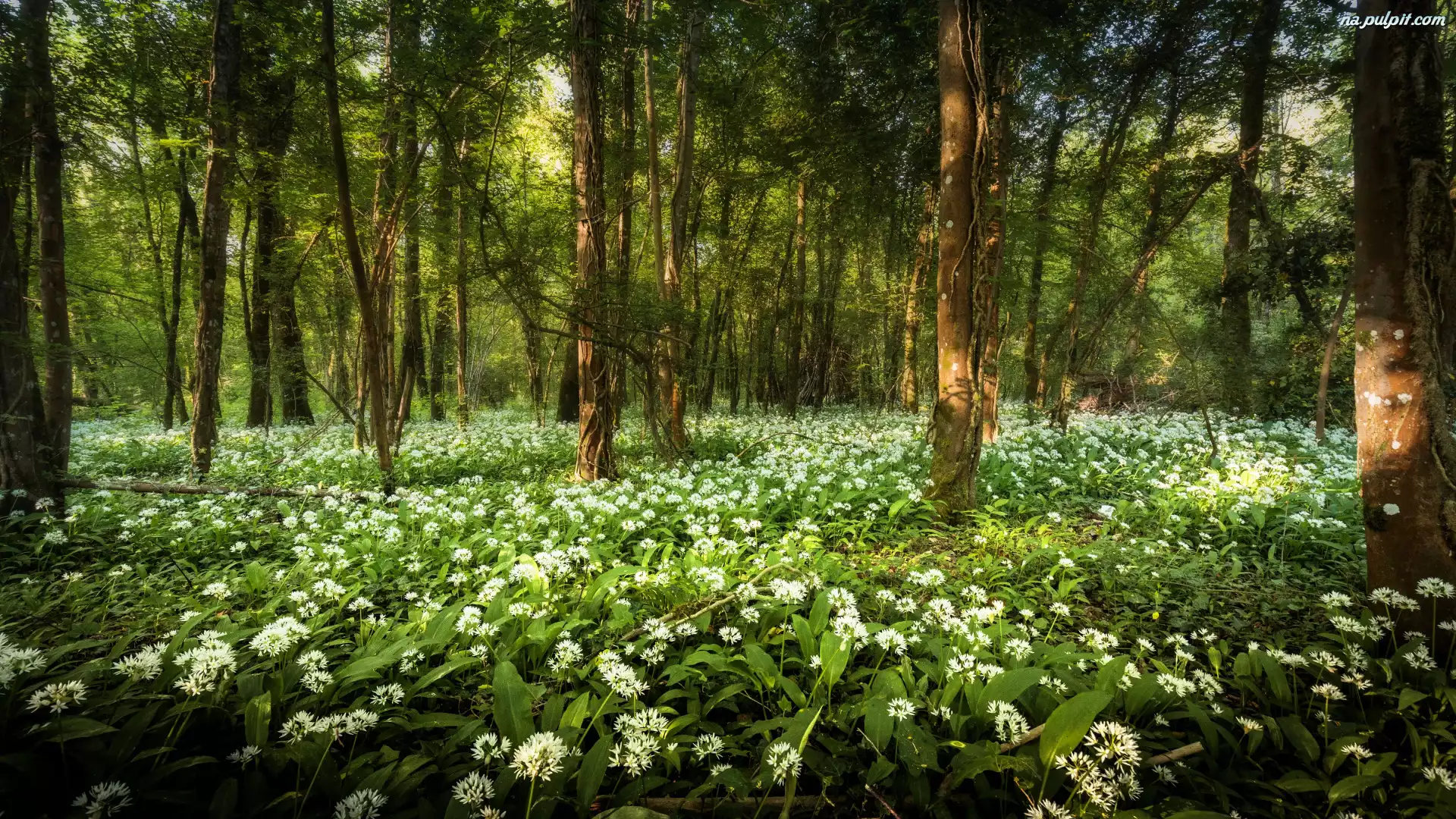 Czosnek niedźwiedzi, Las, Drzewa, Kwiaty, Wiosna Na Pulpit