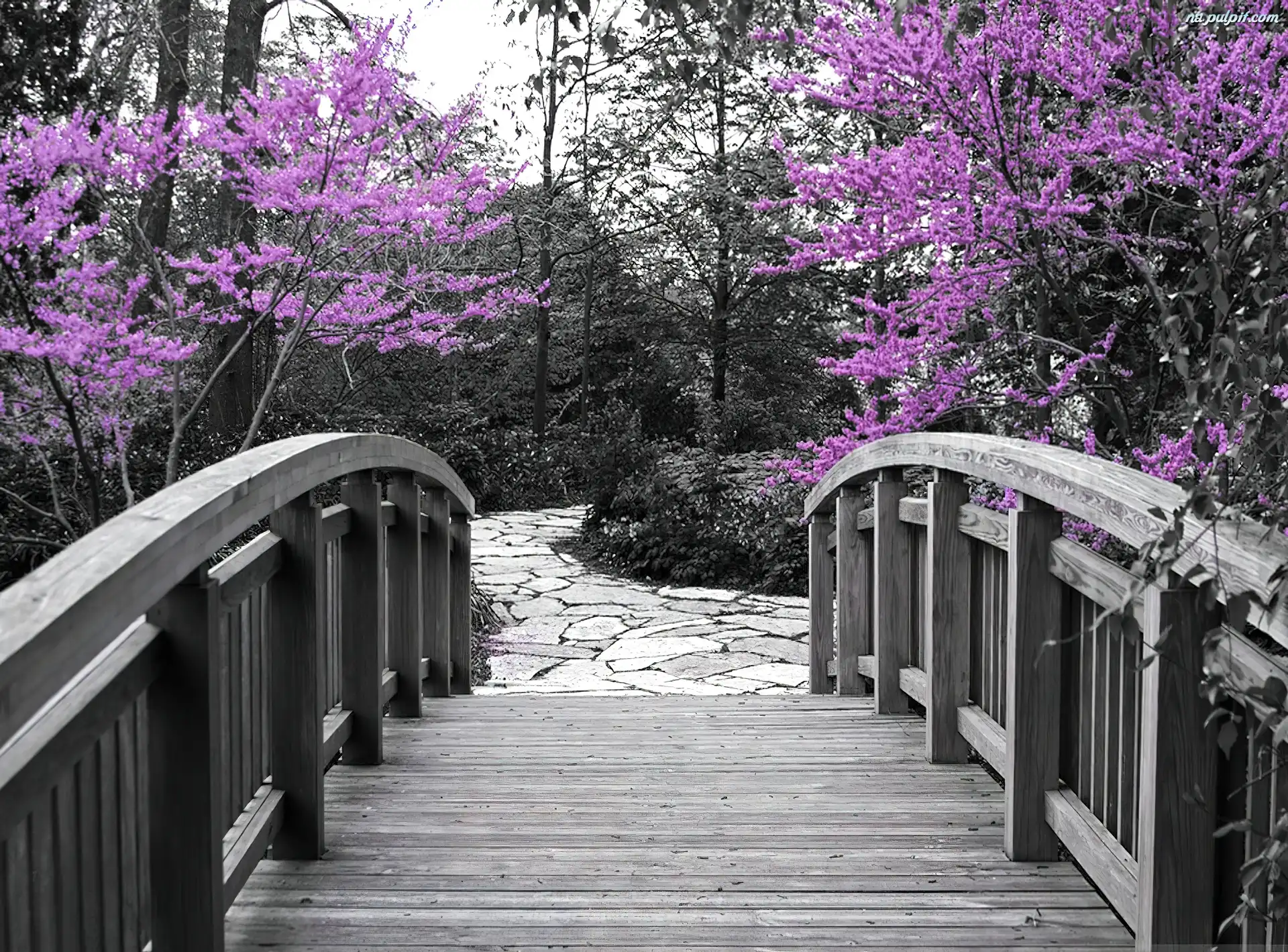 Drzewa, Mostek, Wiosna, KwitnÄ…ce Na Pulpit