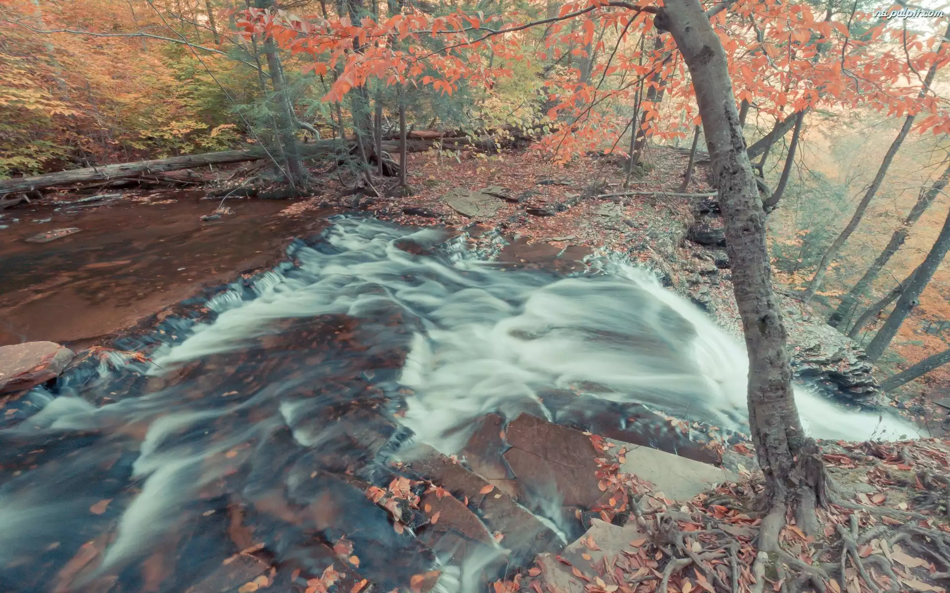 Woda, Drzewa, Liście Na Pulpit