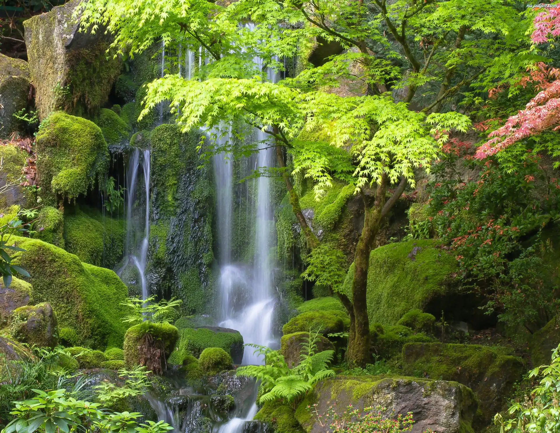 Drzewa, Potok, Wodospad, Skały Na Pulpit